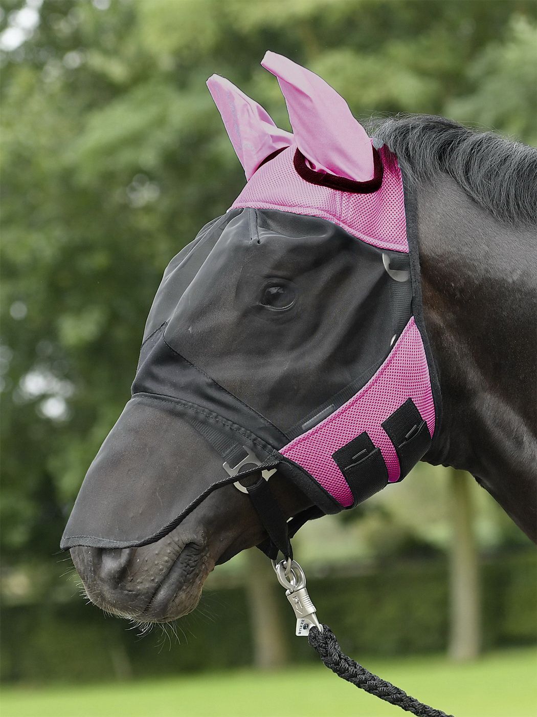 BUSSE Fliegenmaske FLY COVER PRO BU 633027 Fliegenmaske mit fixiertem Nüsternschutz Augenschutz aus engmaschigem Netzgewebe mit Spielraum für die Wimpern Kopfschutz aus leichtem und trotzdem strapazierfähigem 3D-Netzmaterial Ohrenschutz aus weichem, elastischem Lycra-Nylon-Material Ganaschenbereich