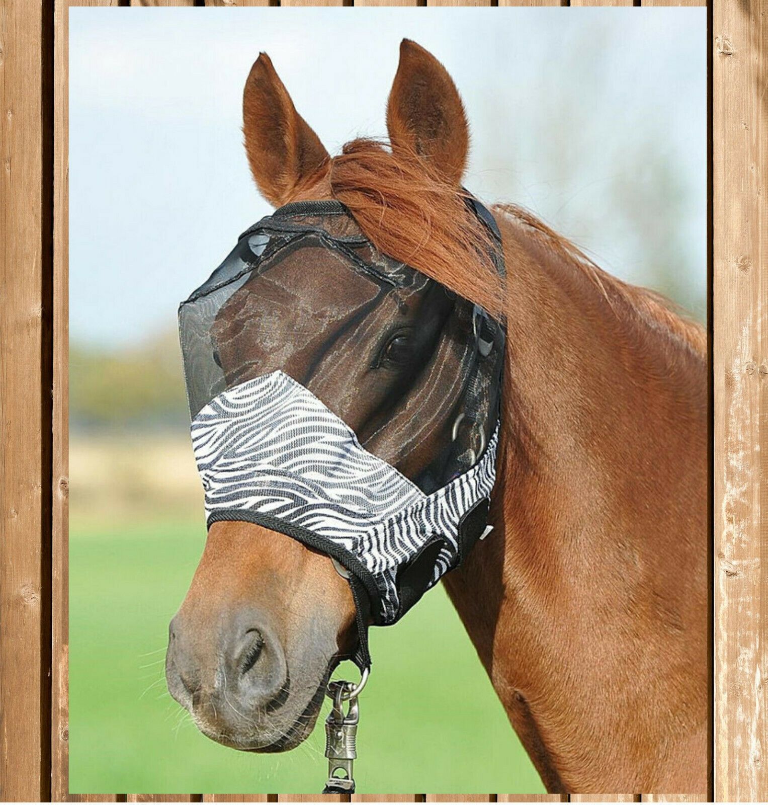 Busse Fliegenmaske Fly Guard Zebra • für Pferde die sich ungern etwas über die Ohren ziehen lassen, aber trotzdem einen Schutz für die empfindliche Augenpartie benötigen • Augenschutz aus engmaschigem Netzgewebe mit umfangreichen Platz für die Augen • Längeneinstellbar im Genick, zu s