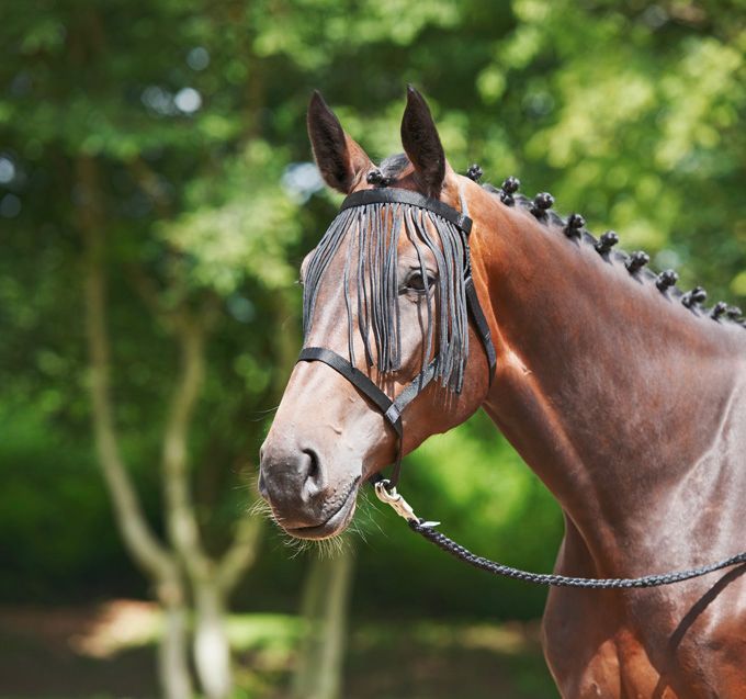 BUSSE Halfter WEIDE-FRANSEN BU 601217 besonders leichtes Spezialhalfter für den Weidegang inklusive integriertem Fliegenkordelband, Fransenlänge 30 cm aus super weichem, hautfreundlichem und trotzdem strapazierfähigem Nylongurt ohne jegliche Metallbeschläge Kehlriemen mit Velcro zu schließen durch d