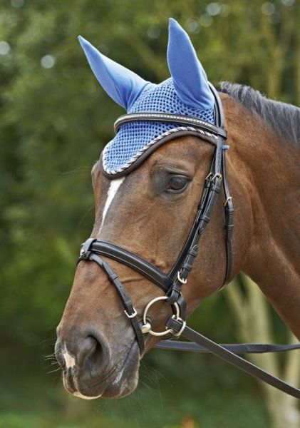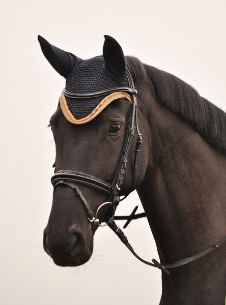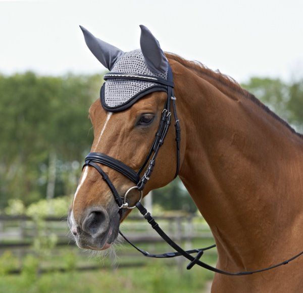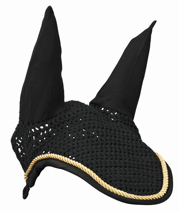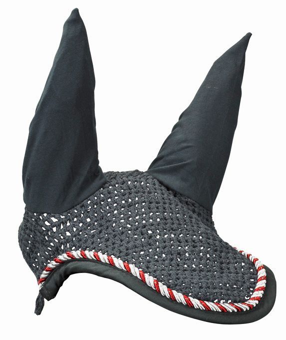 BUSSE Ohrenhaube JERSEY BU 699901 formschöner Fliegen- und Geräuschschutz aus engmaschig gehäkelter Baumwolle geschlossene Ohren aus elastischem und sich der Ohrenform anpassendem Jersey mit Kehlriemenschlaufen zum Durchziehen des Kehlriemens mit edlem Einfass und Zierkordel in Kontrastfarbe