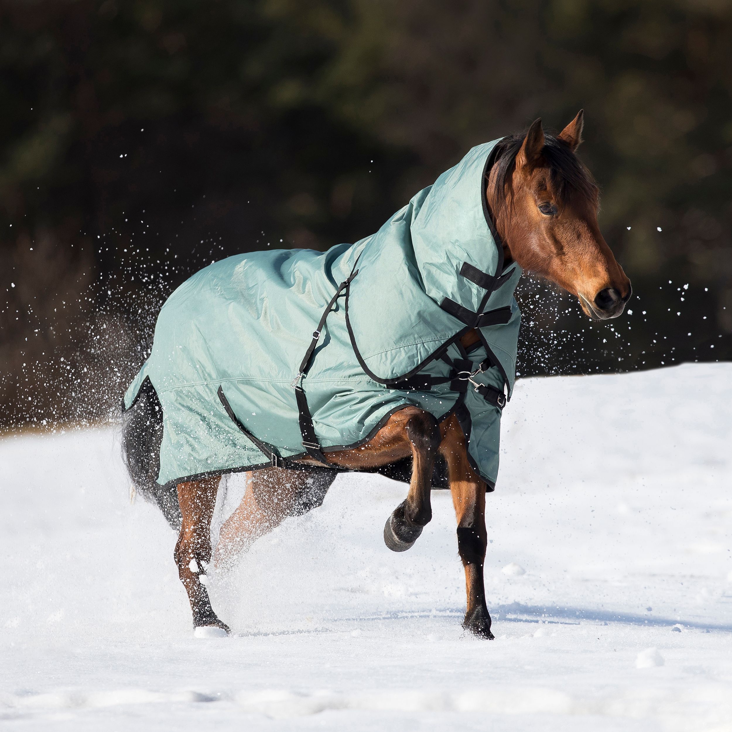 optimaler Outdoor-Komfort für Ihr Pferd flexibel, individuell und situativ in vier Funktionsvarianten nutzbar (Kombinationsprodukte nicht im Lieferumfang enthalten): als solide Paddock- und Regendecke mit mittlerer Isolierung für die Übergangszeit und im Winter in Kombination mit Halsteil FLEXIBLE u