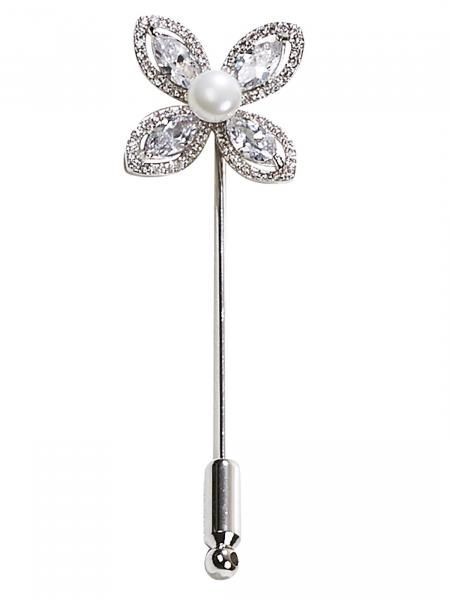 BUSSE Plastronnadel SHINY BU 681547 glänzende Nadel in Blütenform Kunstperle eingerahmt von Blütenblättern besetzt mit großen ovalen und kleinen Strasssteinen vielseitig verwendbare Plastronnadel, z.B. auch als Revers-Schmuck in kleiner Geschenkbox Material: Zinklegierung mit Kupfer