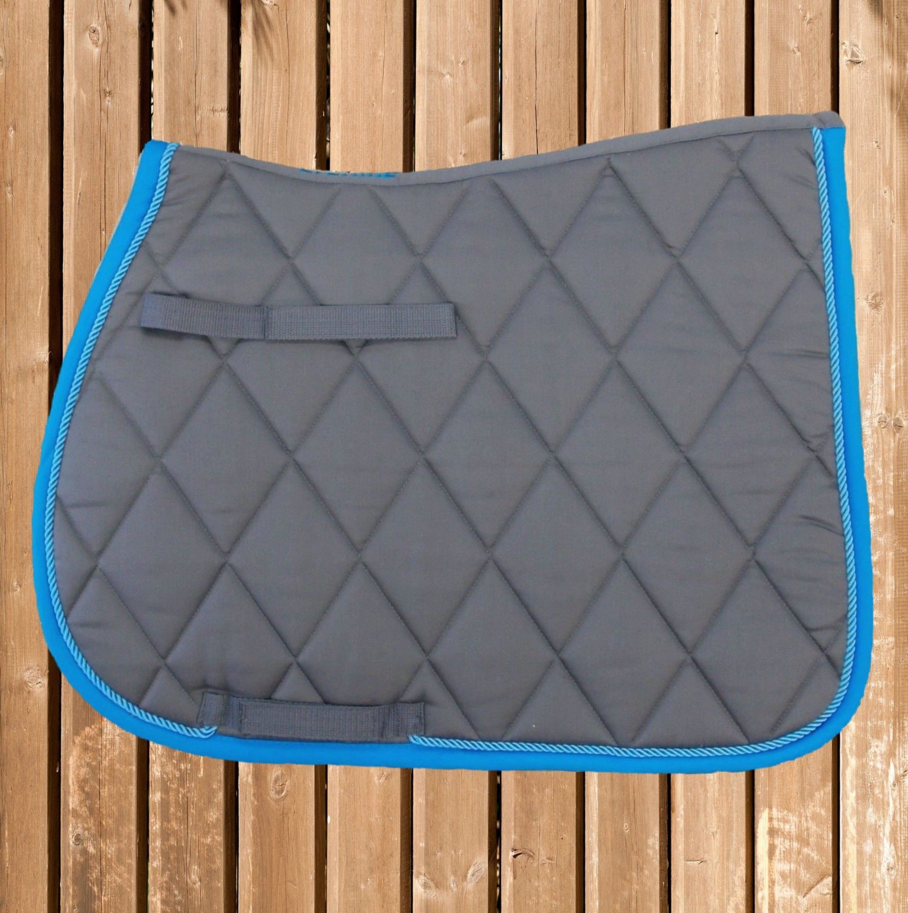 Busse Schabracke Supreme in grau-hellblau · modische Schabracke · rückenformgerechter Schnitt · mit großer Rautensteppung · mit zusätzlich, farblich abgestimmter Zierkordel · Obermaterial aus hochwertiger Baumwolle · Einlage aus dickem Polyfill · Unte