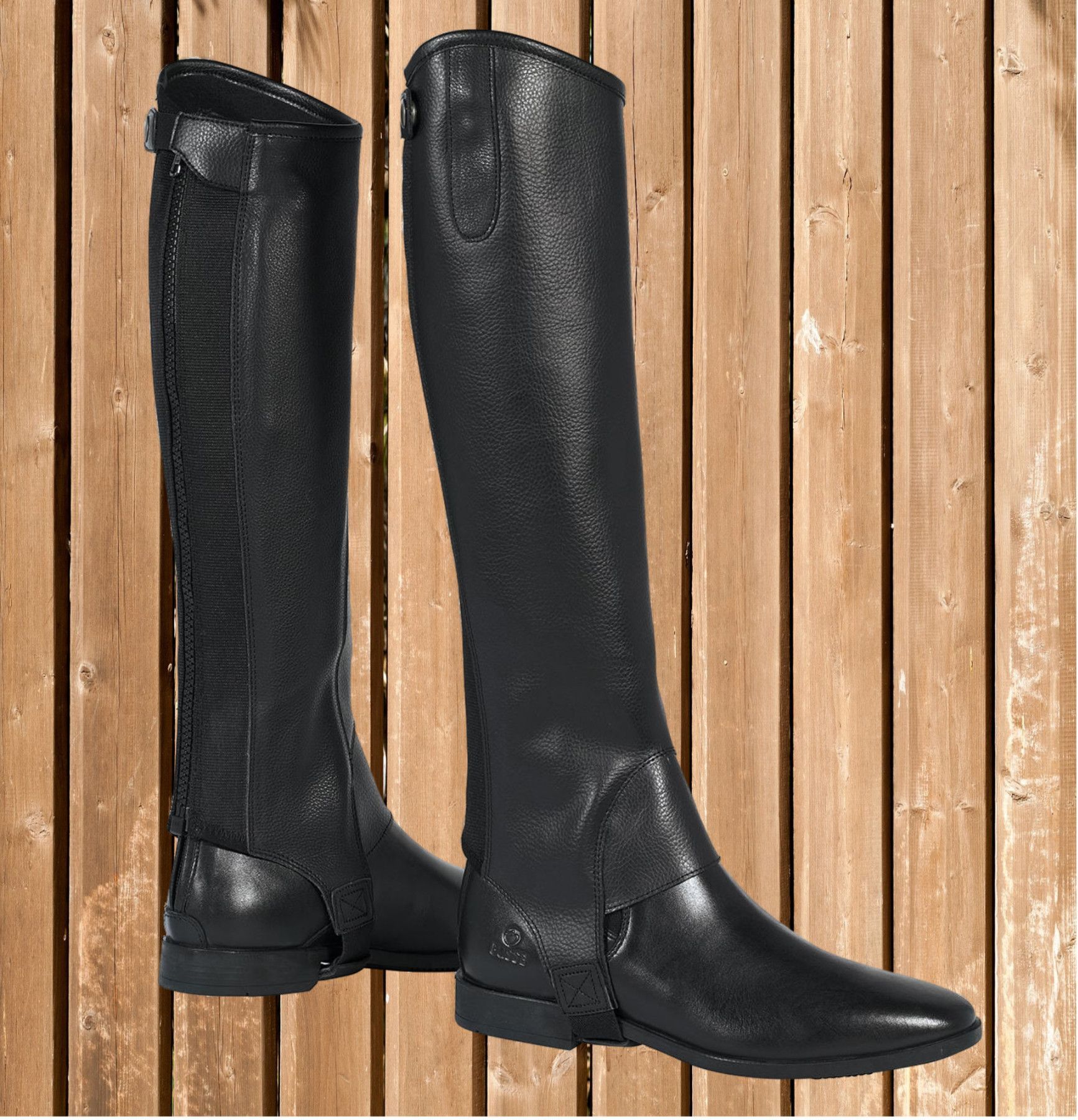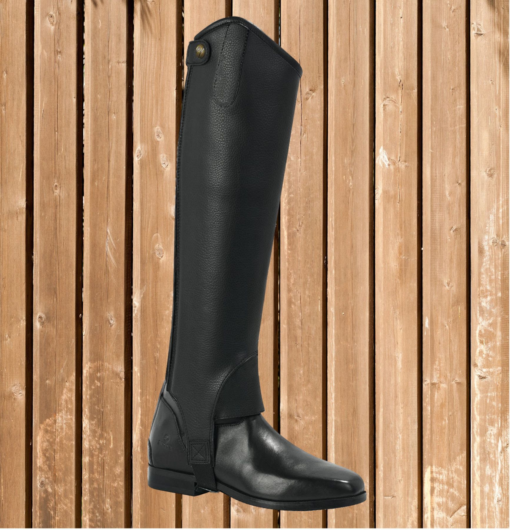 Wadenchaps SOFT-JR Kinder Wadenchaps SOFT von Busse elastische und anatomisch auf das Bein zugeschnittene Close-Contact-Kurzchaps dezenter Dressurbogen seitlich für ein optisch langes Bein im Außenbereich strapazierfähiges High-Tech-Leder in Glattlederoptik mit hoher Dehnkapazität für perfekte Passf