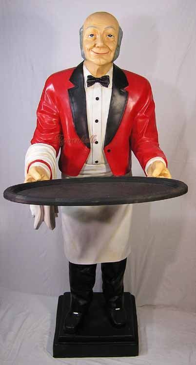 Butler Diener old man Figur Statue Skulptur Deko Butler Tablett Stummer lebensgroß