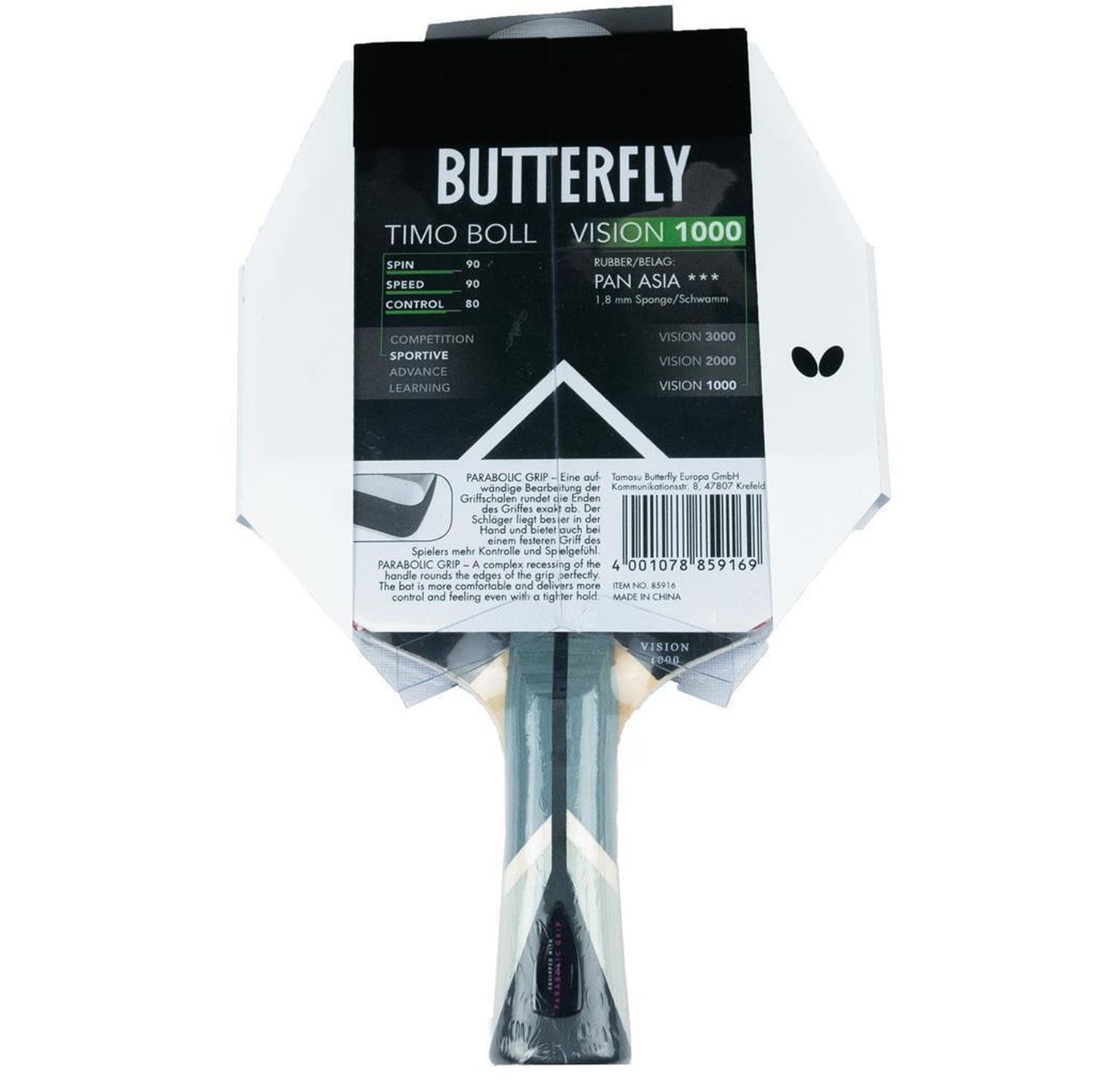 Butterfly Butterfly 1x Timo Boll Vision 1000 Tischtennisschläger + Tischtennishülle Drive