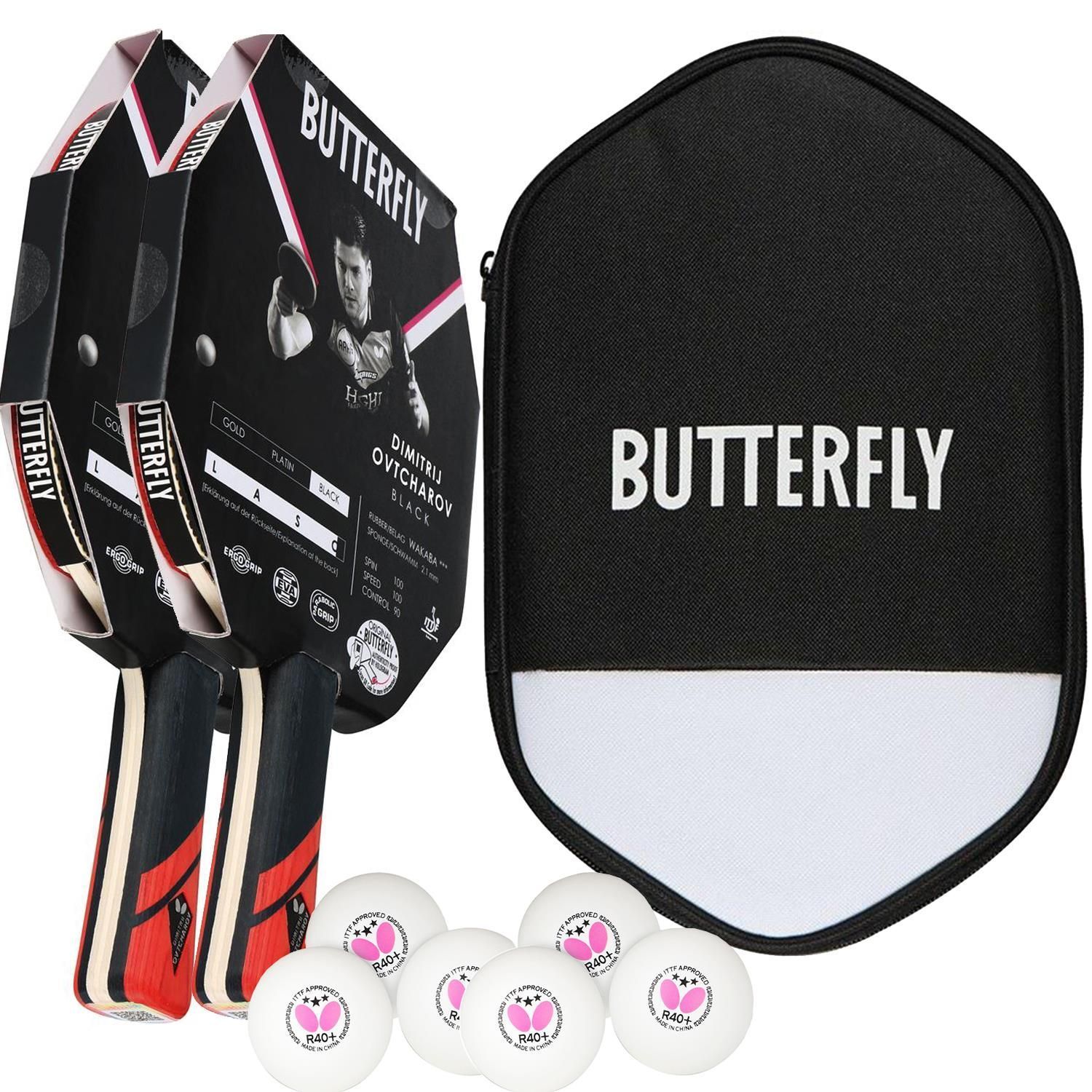 Butterfly Butterfly 2x Dimitrij Ovtcharov Black Tischtennisschläger + Tischtennishülle + 6x