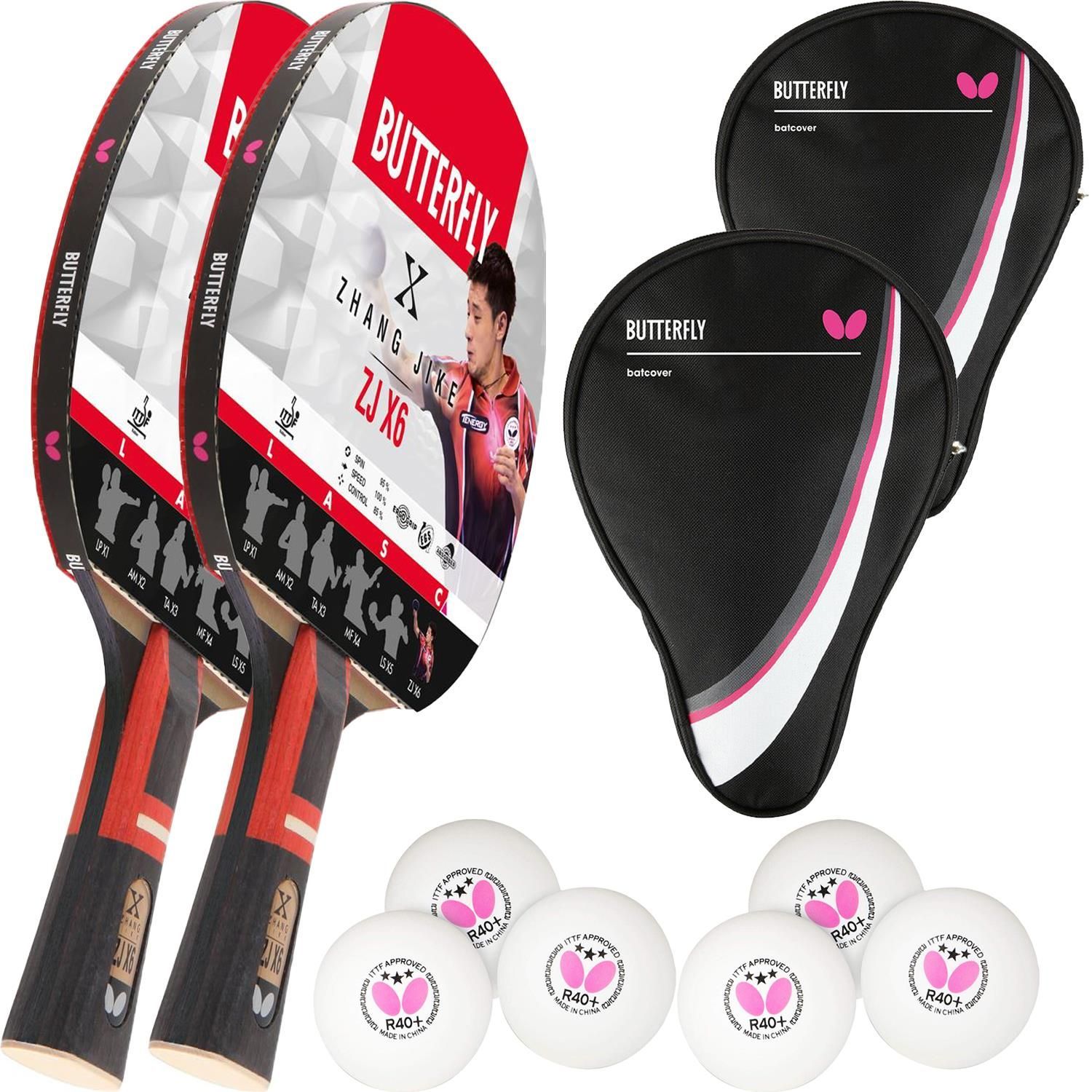 Butterfly Butterfly 2x Zhang Jike Tischtennisschläger + 2x Tischtennishülle Drive Case + 6x