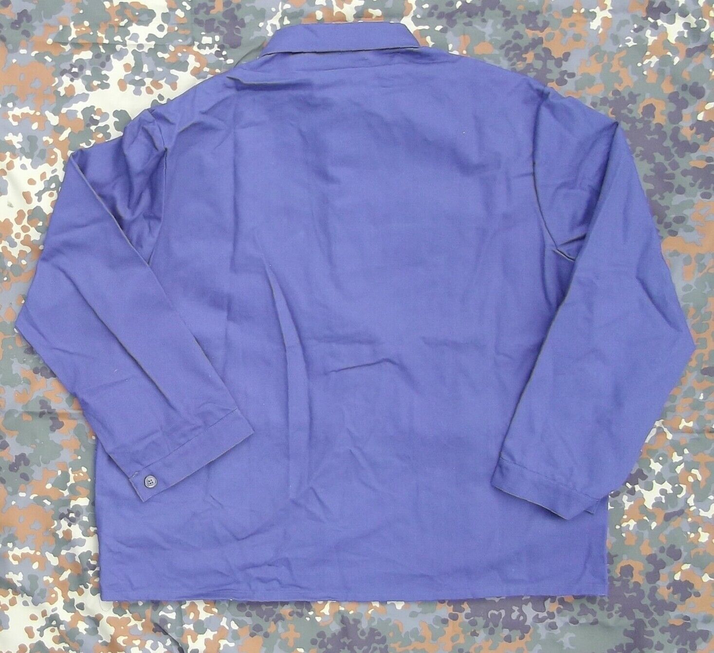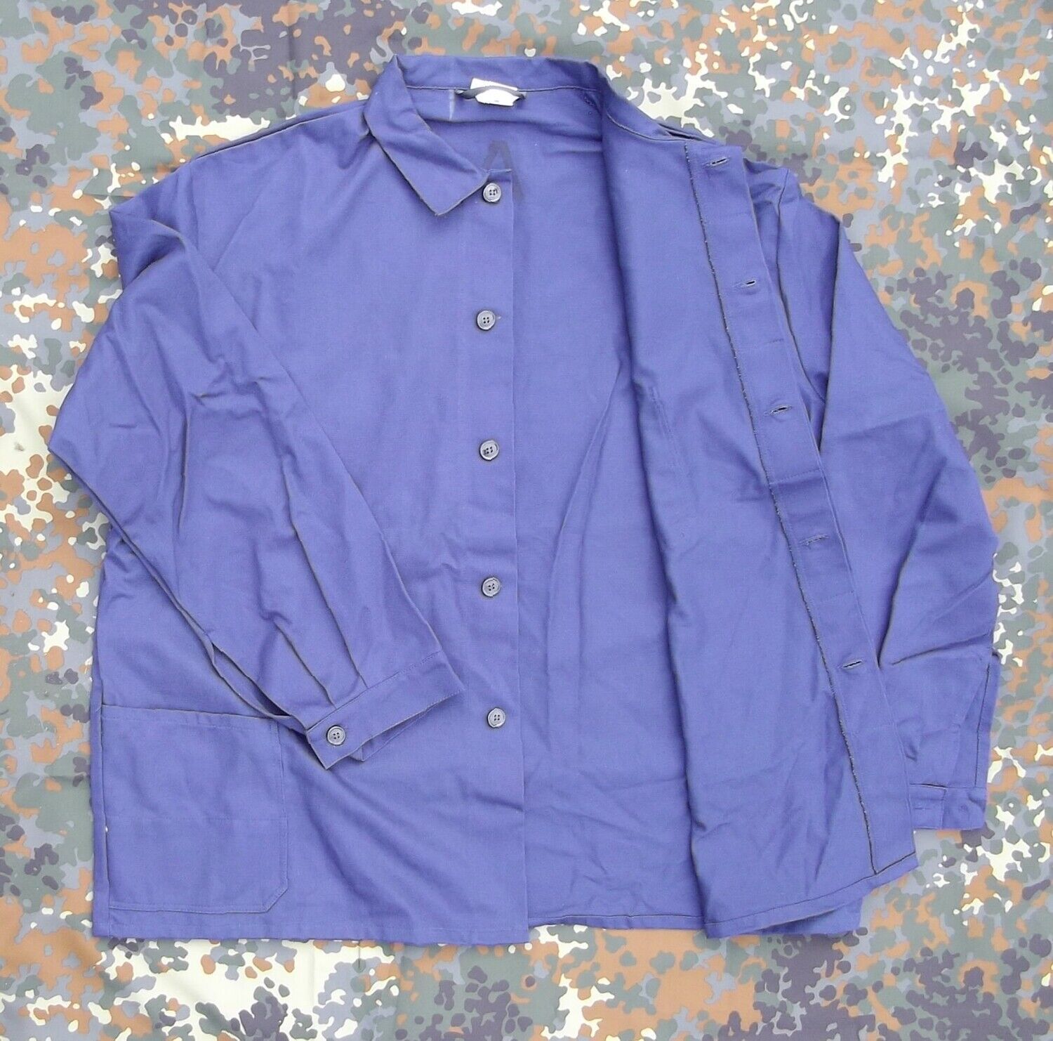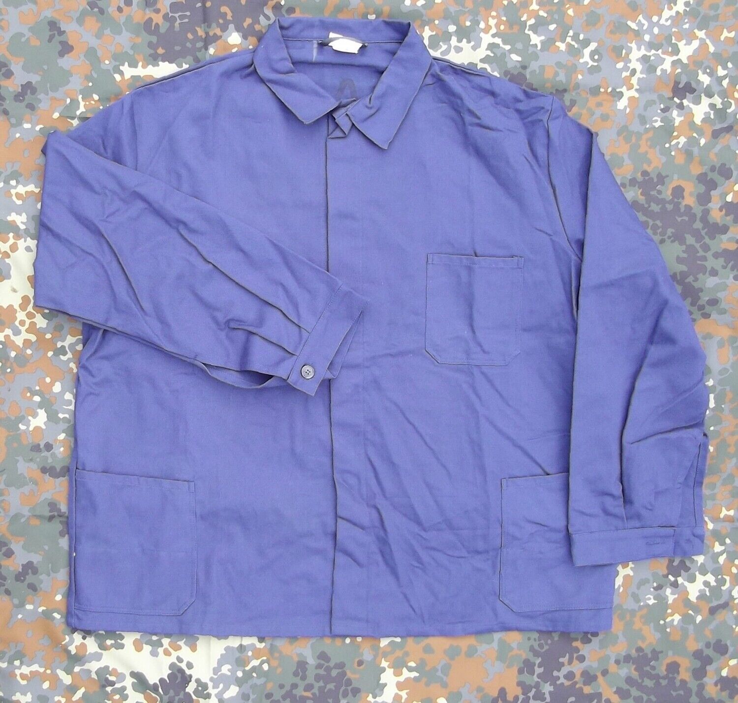 Arbeitsjacke der Bundeswehr Strapazierfähige BW Arbeitsjacke. Version mit 3 Taschen und verdeckter Knopfleiste. Material: 100% Baumwolle, Fischgrätgewebe. Farbe: blau - 1 Brusttasche - 2 Taschen - Verdeckte Knopfleiste - Ärmel mit Knopfverschluss