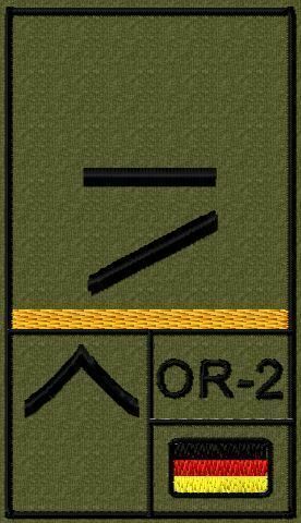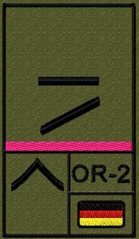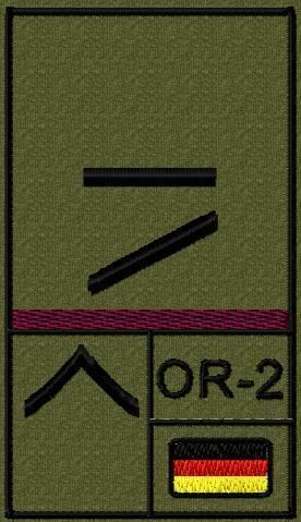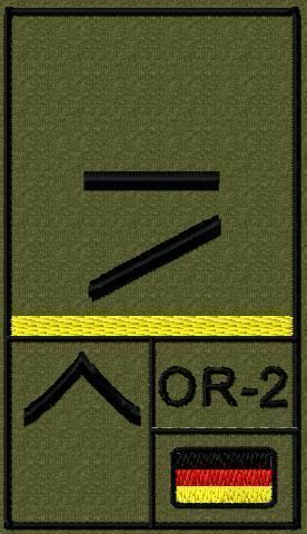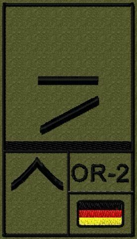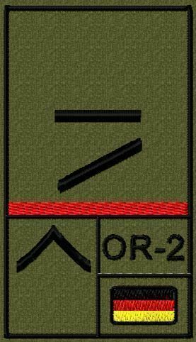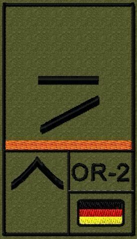 Dienstgradabzeichen Gefreiter UA auf Klett mit NATO-Rangcode und Litze in Waffenfarbe, dem US Army-Dienstgrad und der Deutschlandflagge. Passt ideal auf das BW Unterhemd mit Klett auf der Brust oder auch auf dem Smock. Der Patch hat die Maße: B: 5,2cm x L: 9,3cm. Jedes zweite Rangabzeichen pro Beste