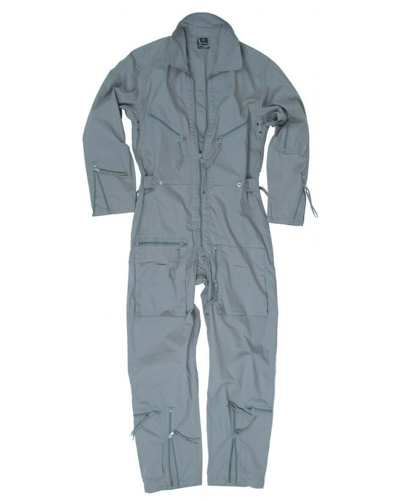 Fliegerkombination der Bundeswehr Material: 65% Polyester, 35% Baumwolle. Hersteller: Sturm (MiL-Tec) Farbe: grau - insgesamt 7 Taschen mit Reißverschluss - Belüftungslöcher unter den Achseln - Druckknöpfe zur Taillenweitenregulierung - Arm- und Beinabschluss mit Reißverschluss