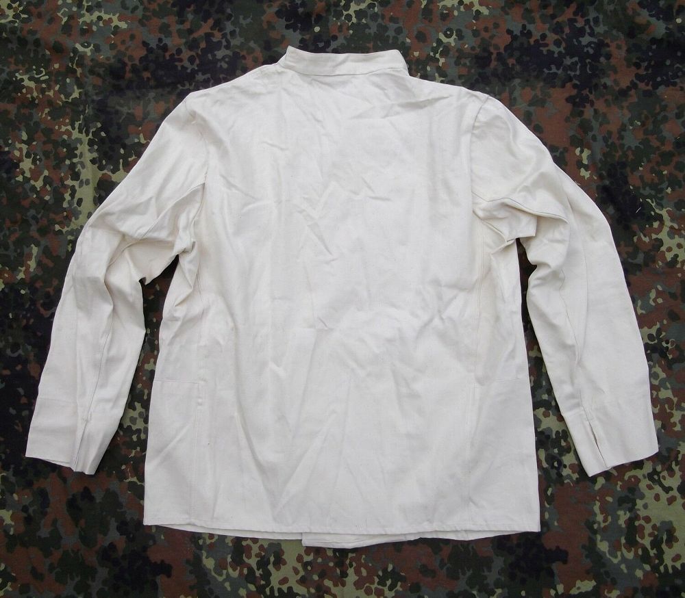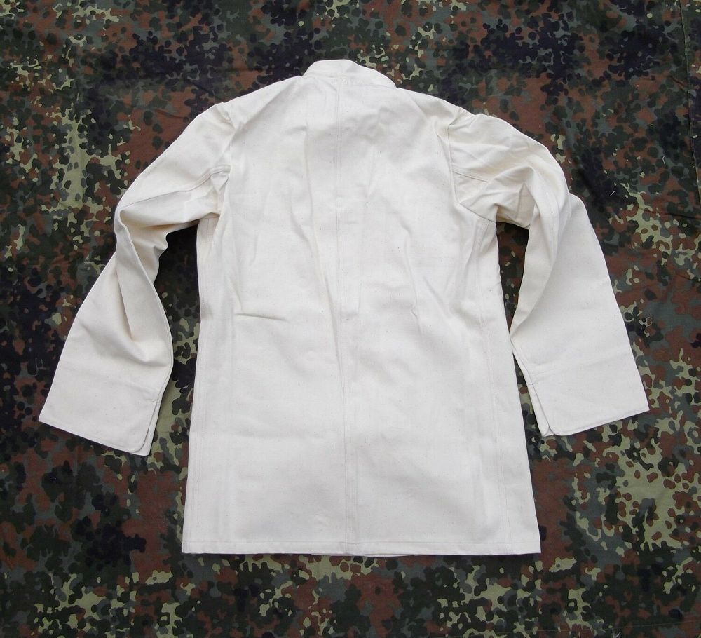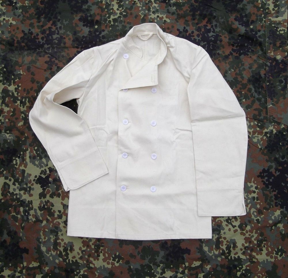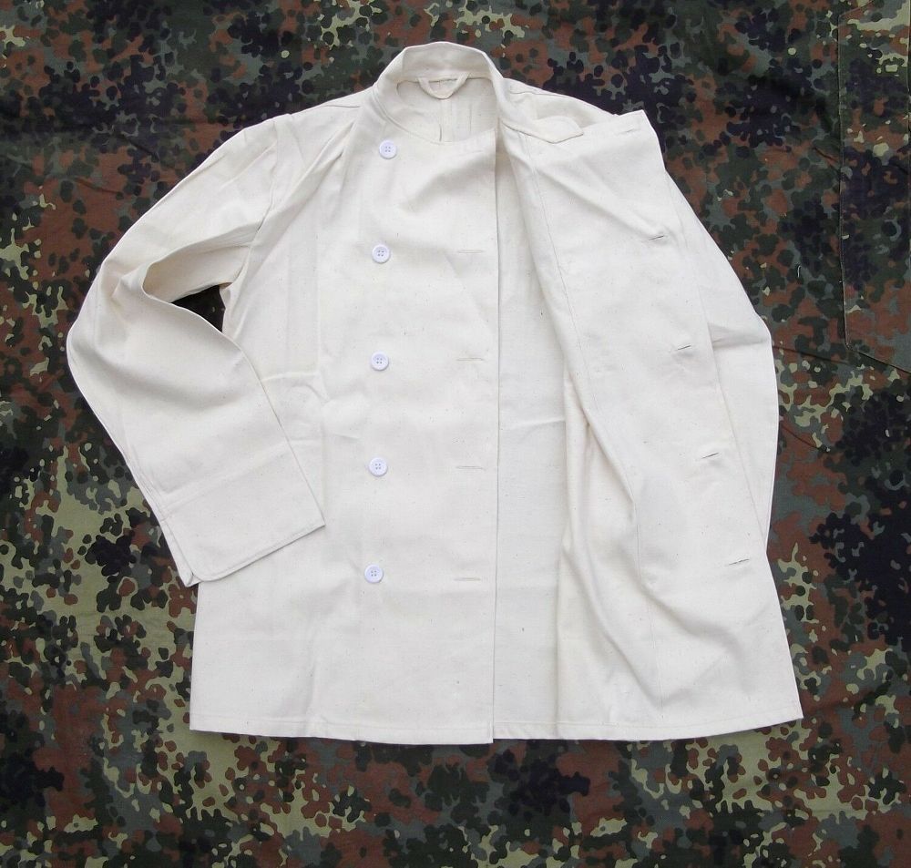 BW Jacke für Verpflegungspersonal Kochjacke der Bundeswehr. Unbenutzte Lagerware in neuwertigem Zustand. Material: Baumwolle Leinen Mischgewebe rohweiss. Knöpfe: Kunststoff. Größe 172 53 Maße: Rückenlänge: ca. 71 cm Schulterbreite: ca. 49 cm Brustweite: ca. 63 cm Ärmel innen aussen: ca. 50 cm 65 cm
