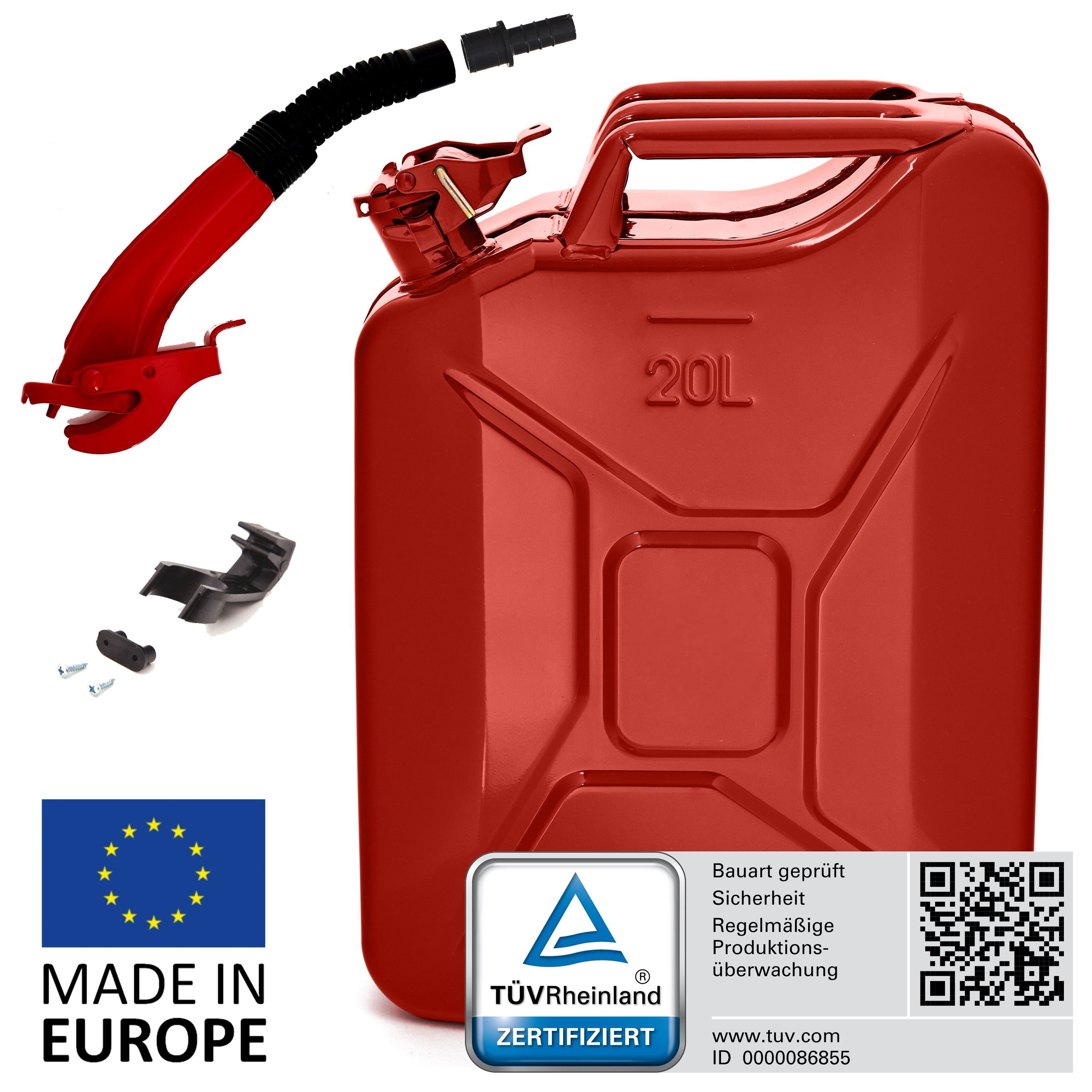 BW® Kraftstoffkanister Metall Benzinkanister 20 Liter mit Ausgießer - UN-Zulassung
