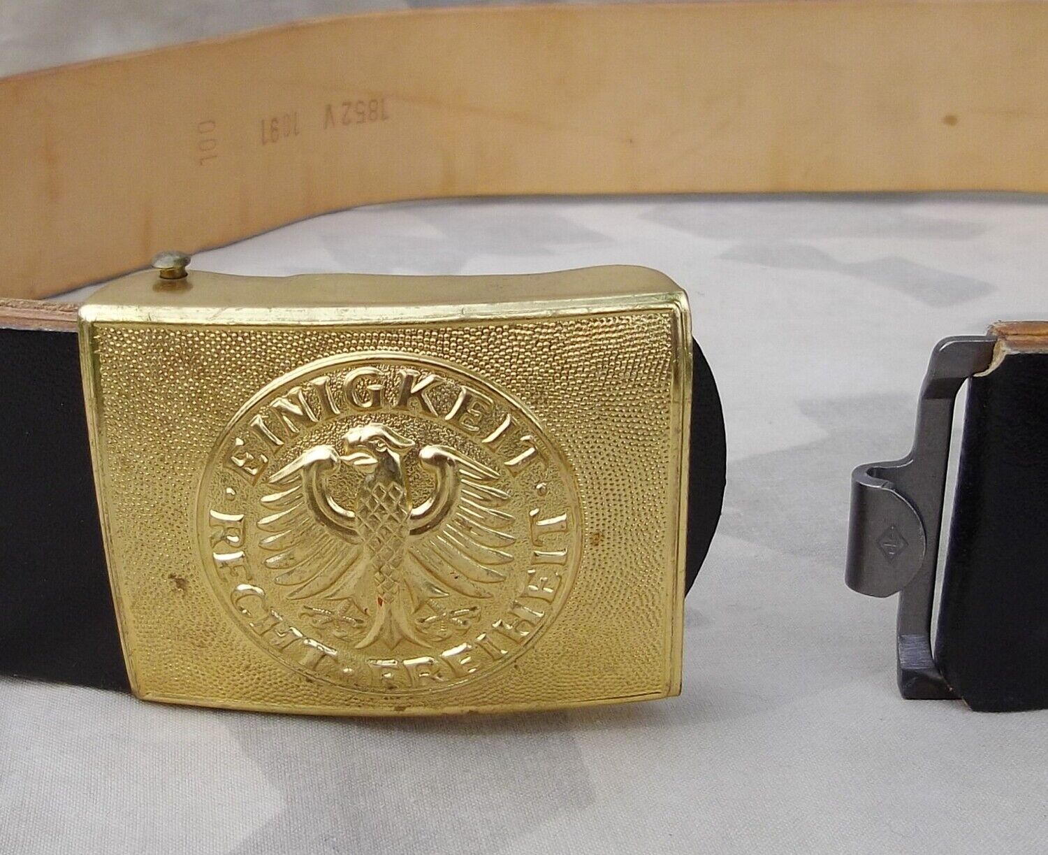 BW Marine Koppel Gebrauchtes Marine Koppel mit goldfarbenem Schloss. Lederriemen, Länge: 90 cm, Breite: 5 cm. Zustand: gut mit Gebrauchsspuren.