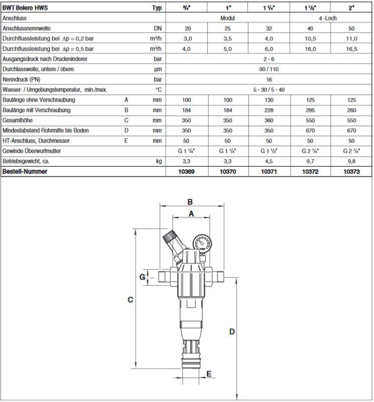 BWT BWT Bolero HWS DN40 1 1/2" Druckminderer Rückspülfilter Hauswasserstation Filter
