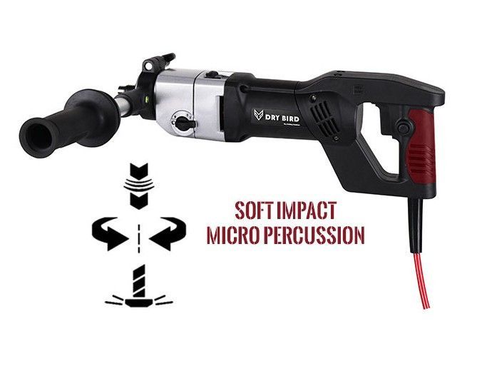 Die BYCON DB-132 ist die ideale Lösung für Trockenkernbohrungen mit einem Durchmesser bis zu 132 mm in harten Baumaterialien wie Stahlbeton , Ziegel und hochabrasivem Kalksandstein. Dank der integrierten Mikro-Schlag-Funktion (Softschlag) erzielen Sie auch bei harten Untergründen einen schnellen Boh