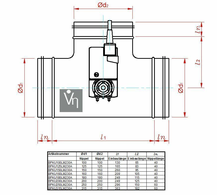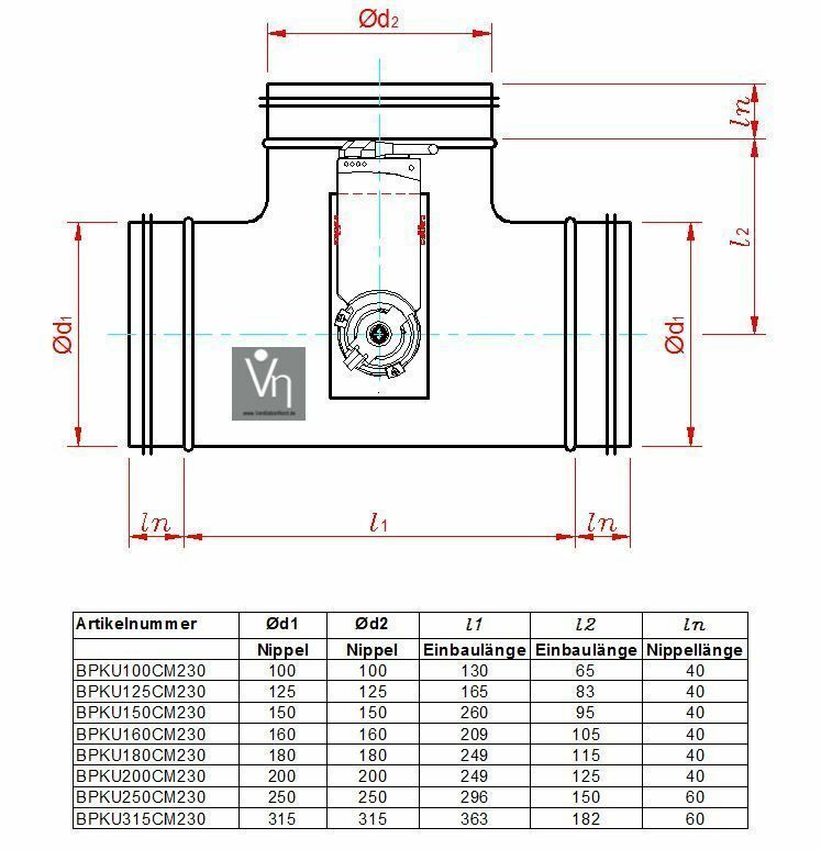 Bypassklappe Edelstahl V2A Motorklappe Erdwärmetauscher Belimo LM230/24 CM