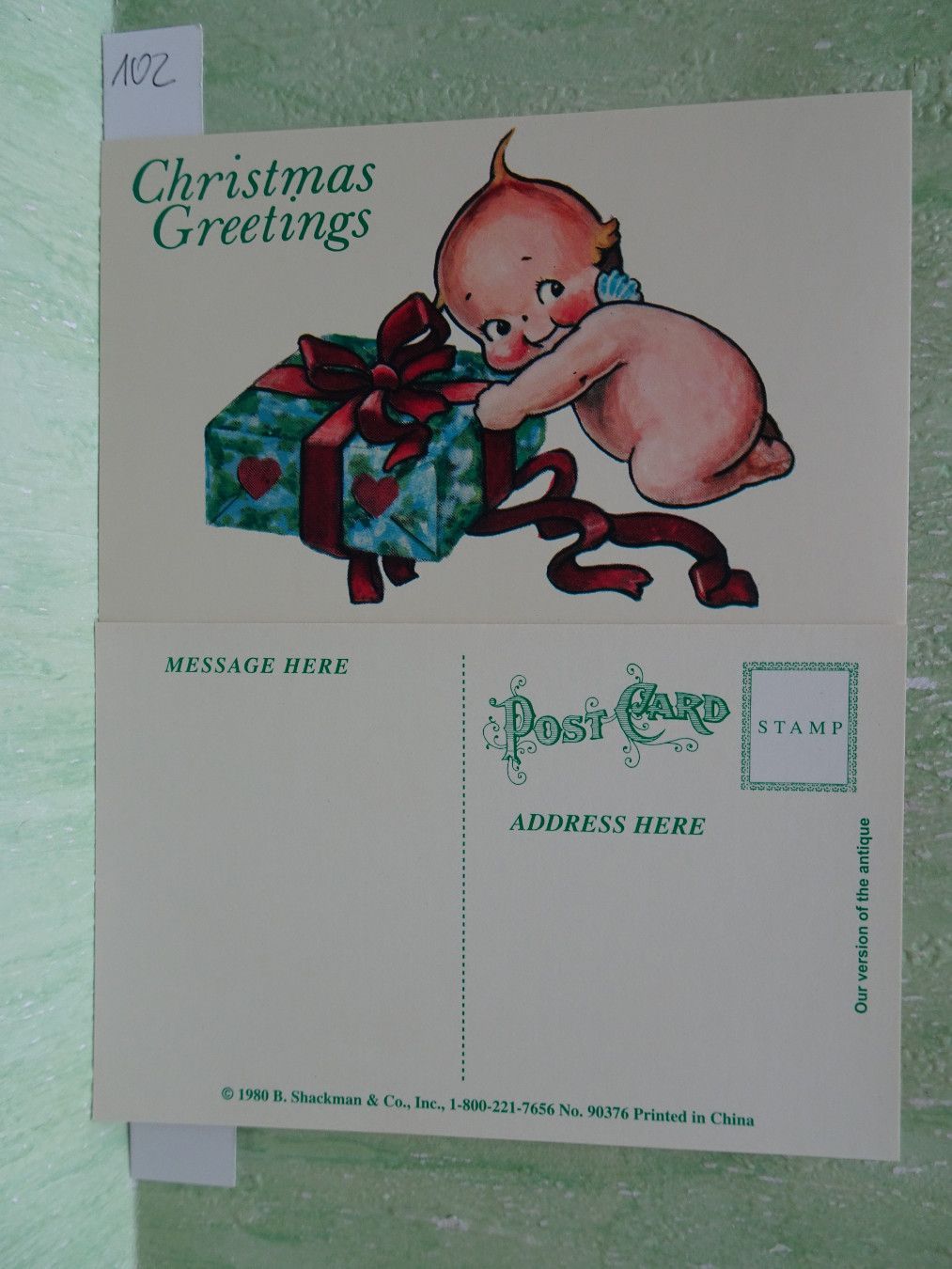 C) 1980 Shackman England Postkarte AK Merry Christmas Engel mit Humor lustig