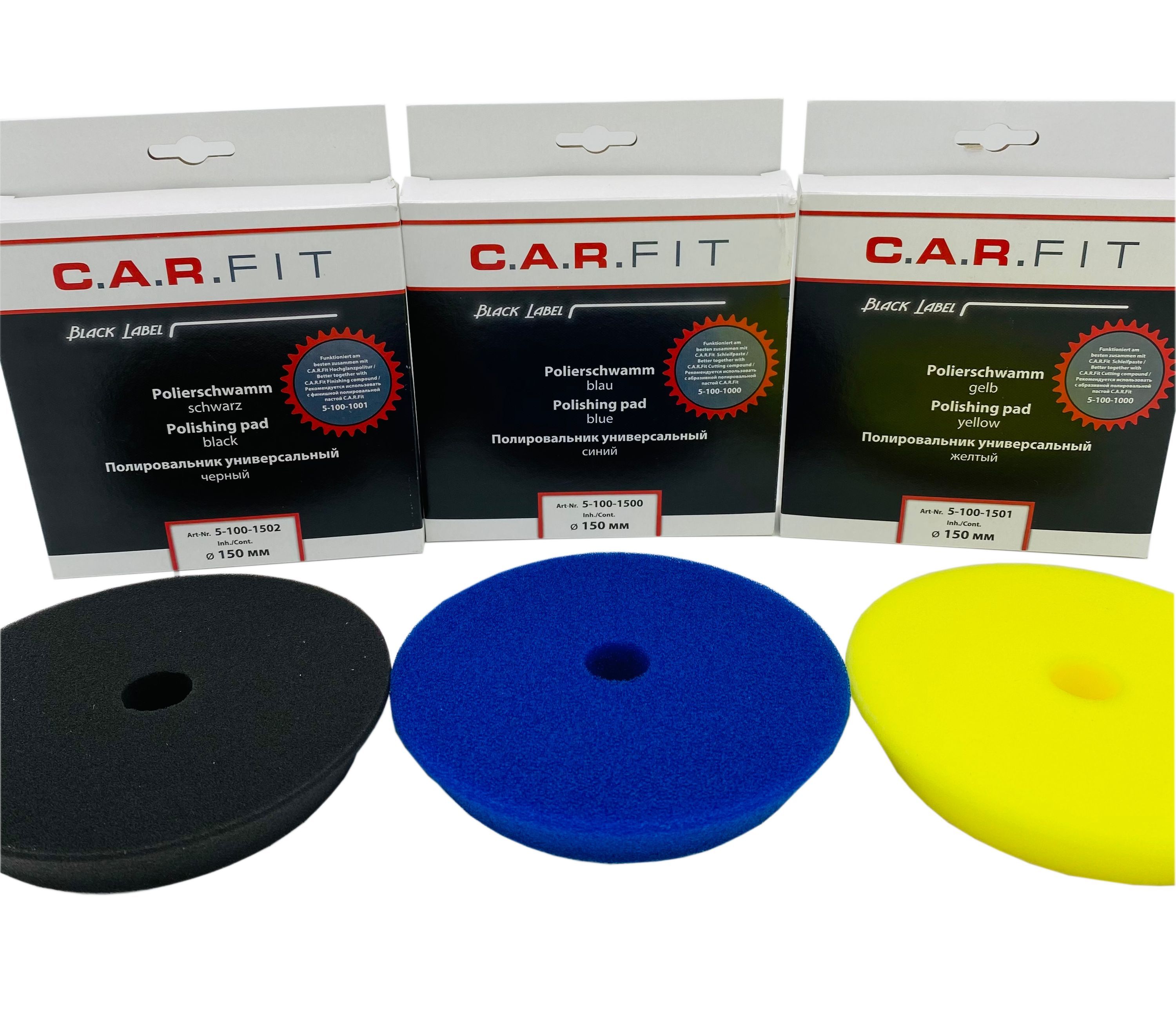 Art.: 5-100-1500 Polierschwamm blau, D-125-150 mm , hart Art.: 5-100-1501 Polierschwamm gelb, D-125-150 mm , medium hart Art.: 5-100-1502 Polishing Pad, Schwarz D125-150mm, weich