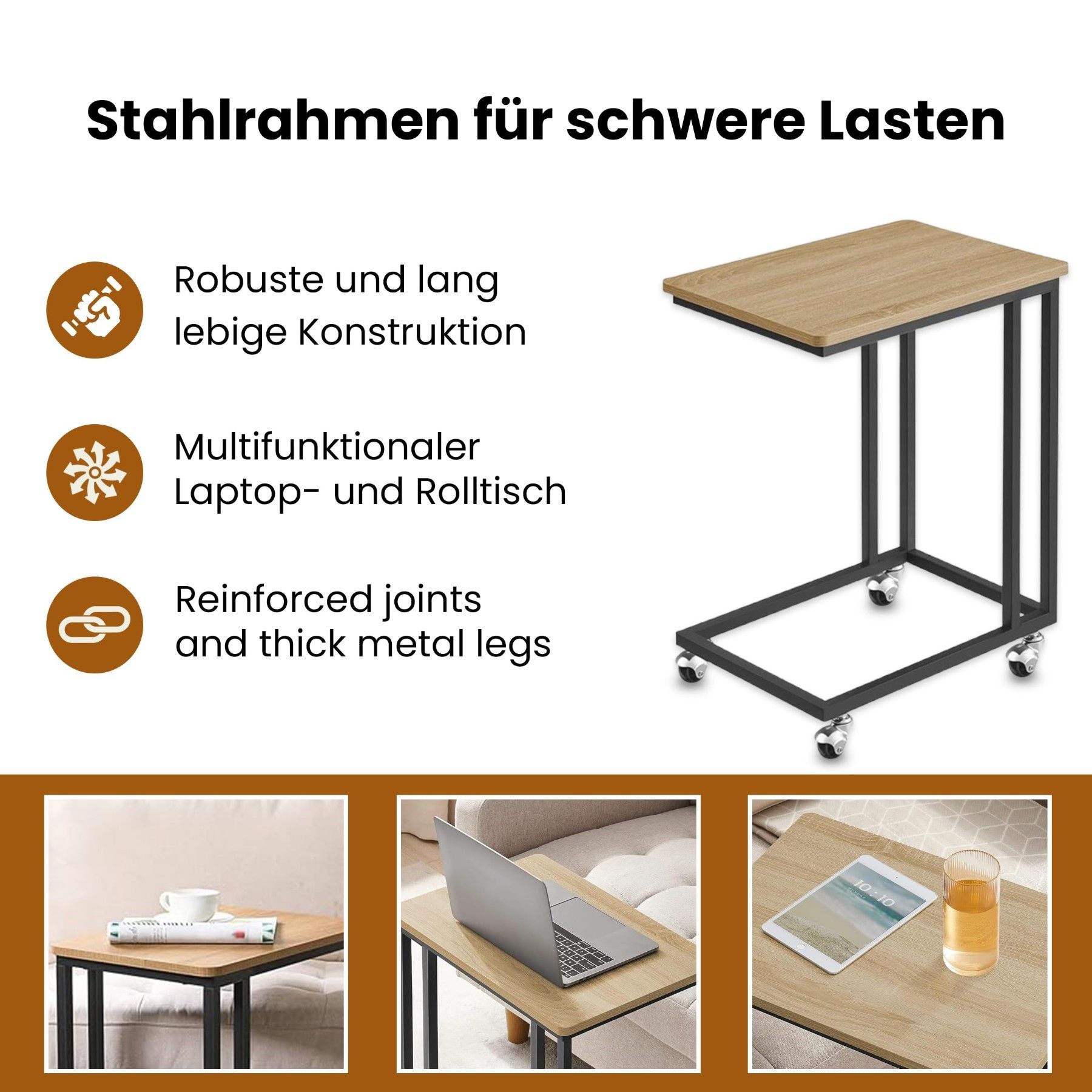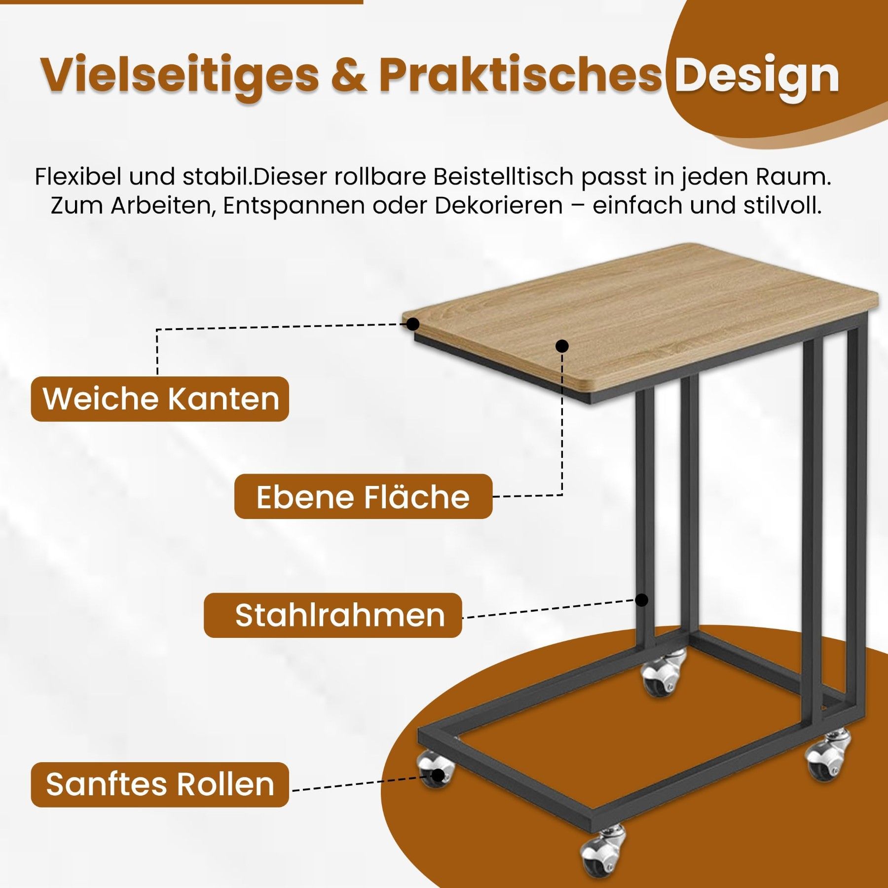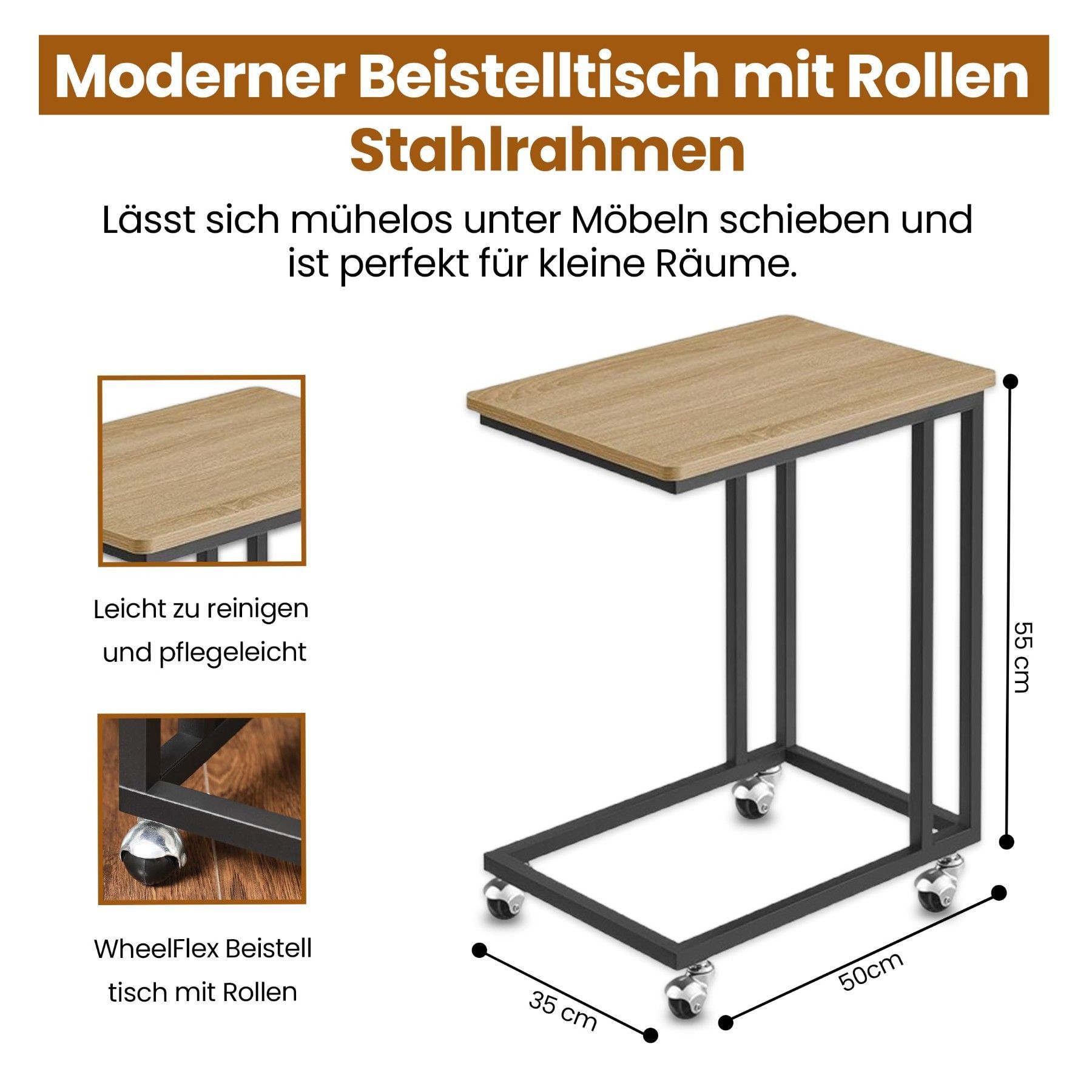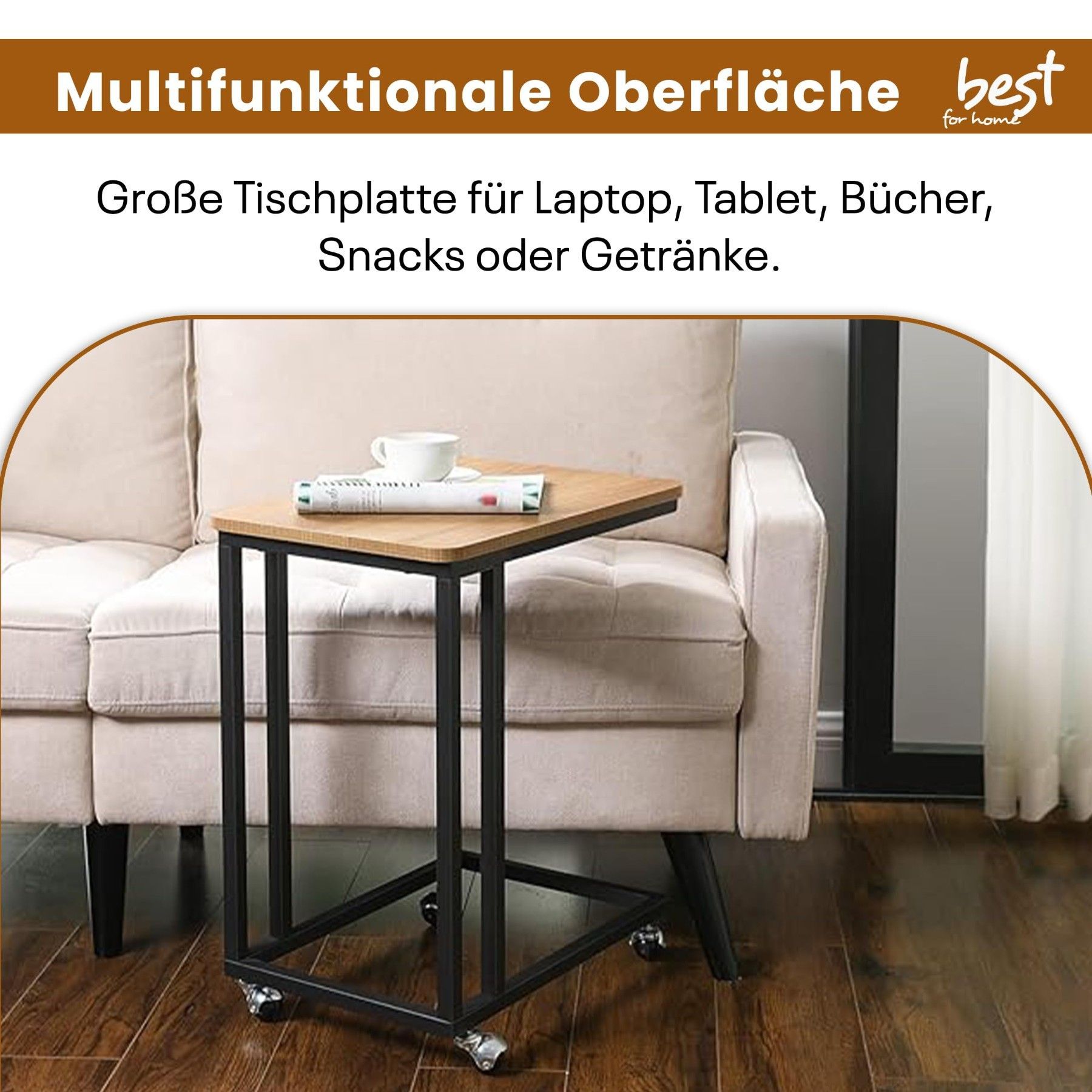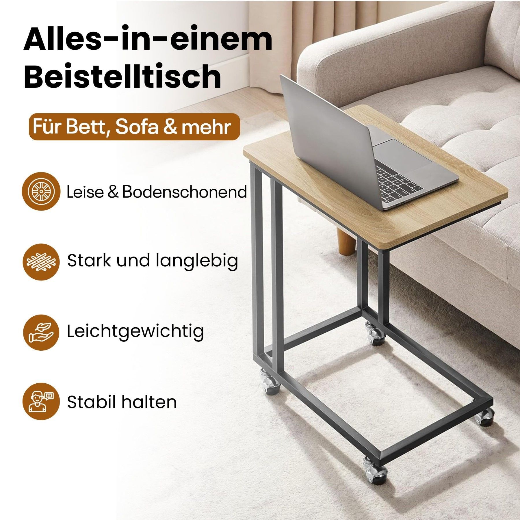 C-förmiger Beistelltisch mit Rollen - Flexibel, stabil & ideal für modernes Wohnen