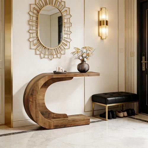 C-förmiger Couchtisch Flurtisch Konsolentisch Holz Rtic Brown modern