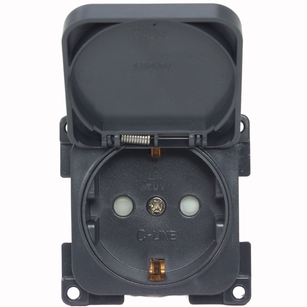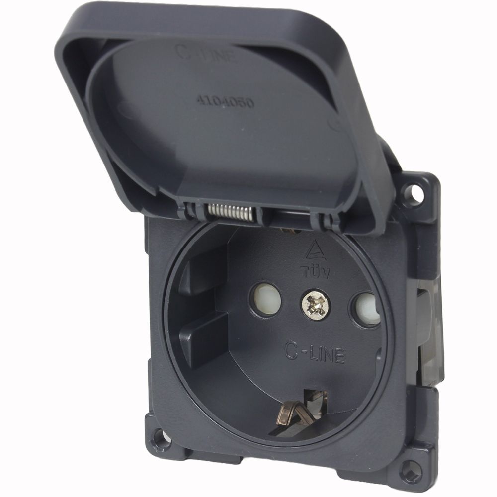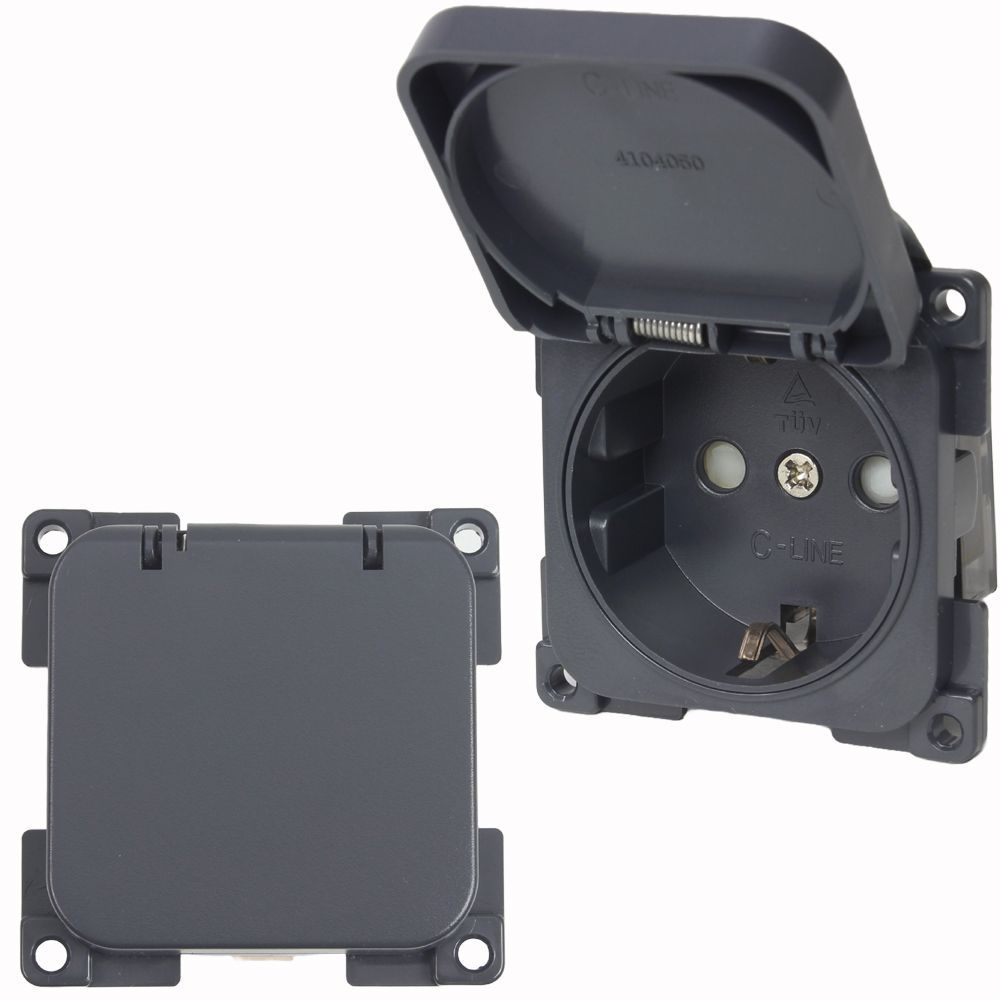 C-Line Presto Inprojal CBE Schuko Steckdose + Klappdeckel 220 / 230 Volt anthrazit
