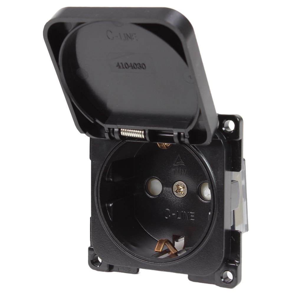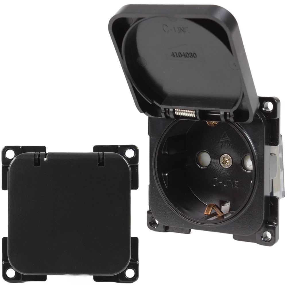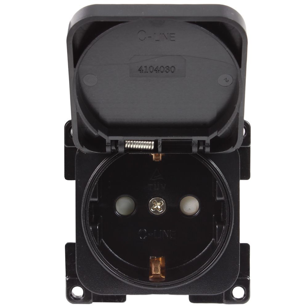 C-Line Presto Inprojal CBE Schuko Steckdose + Klappdeckel 220 / 230 Volt schwarz
