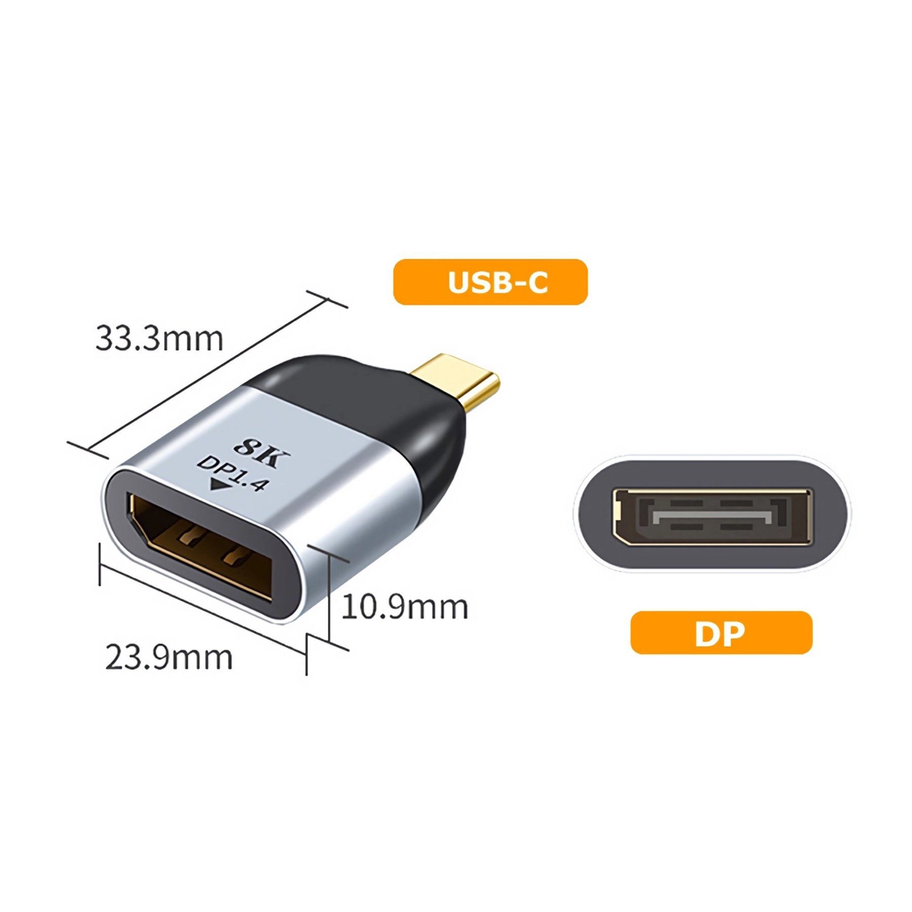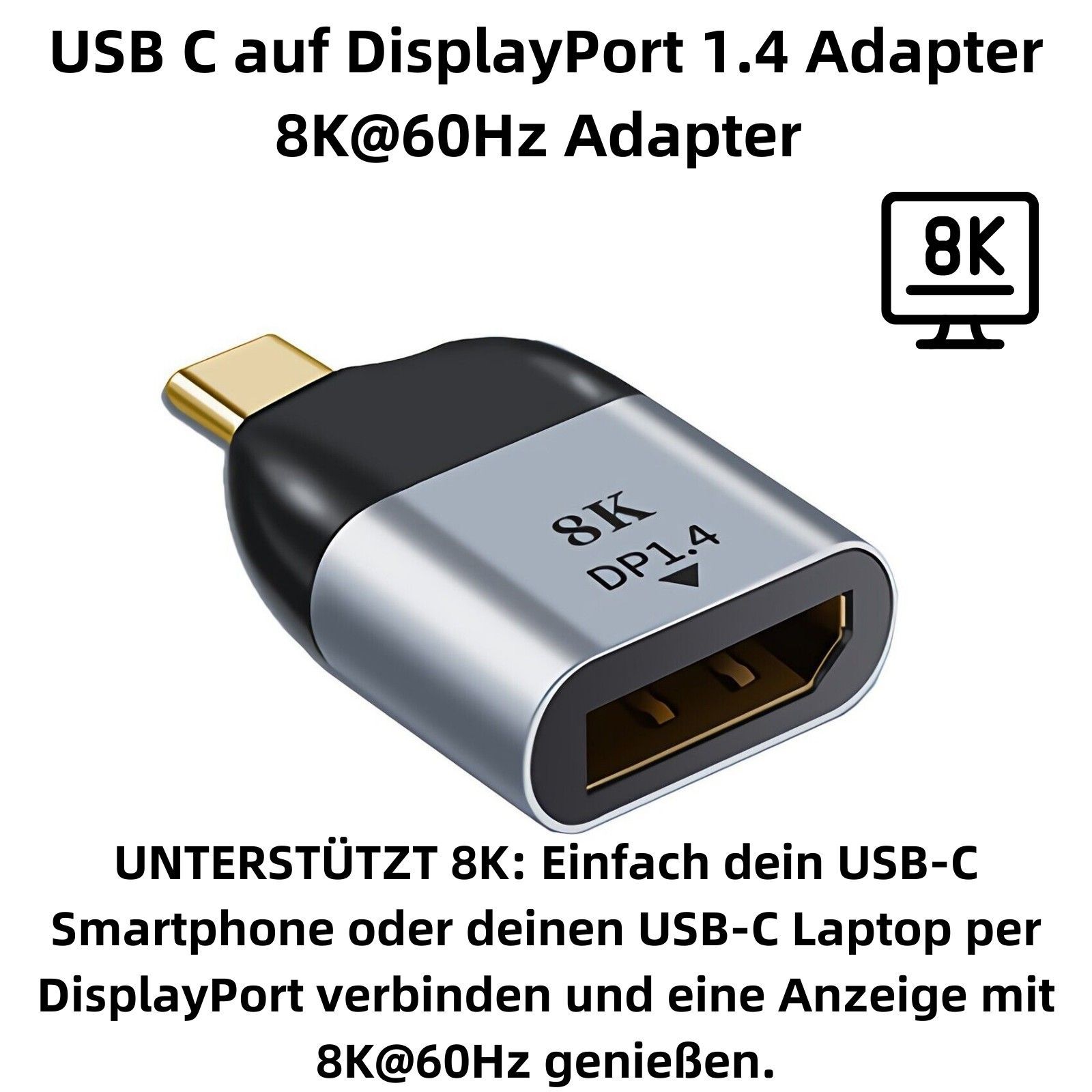 C08 USB C auf DisplayPort 1.4 Adapter 8K@60Hz USB C zu DP 1.4 Adapter TV PC Laptop 3D