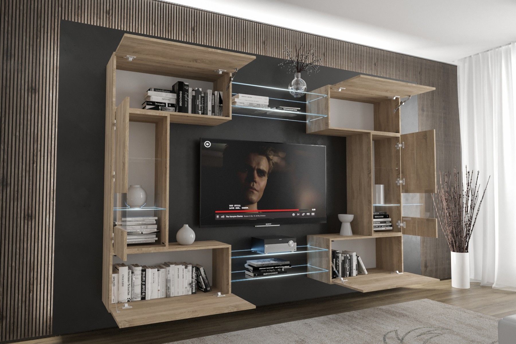 C29NEW 254 cm Möbel Wohnzimmer Wohnwand Mediawand Wohnschrank Schrankwand Farbauswahl