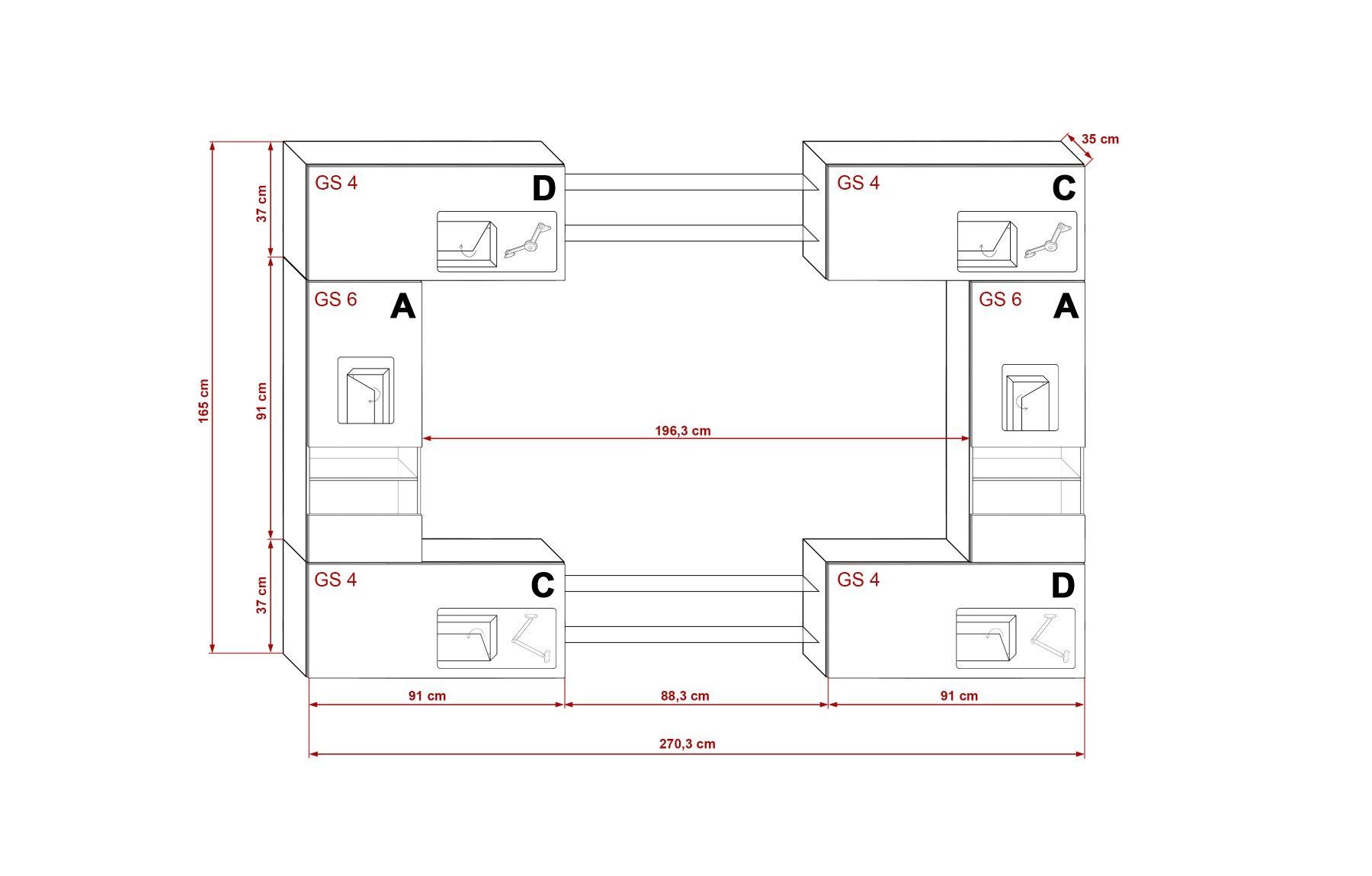C29NEW 270 cm Möbel Wohnzimmer Wohnwand Mediawand Wohnschrank Schrankwand Farbauswahl