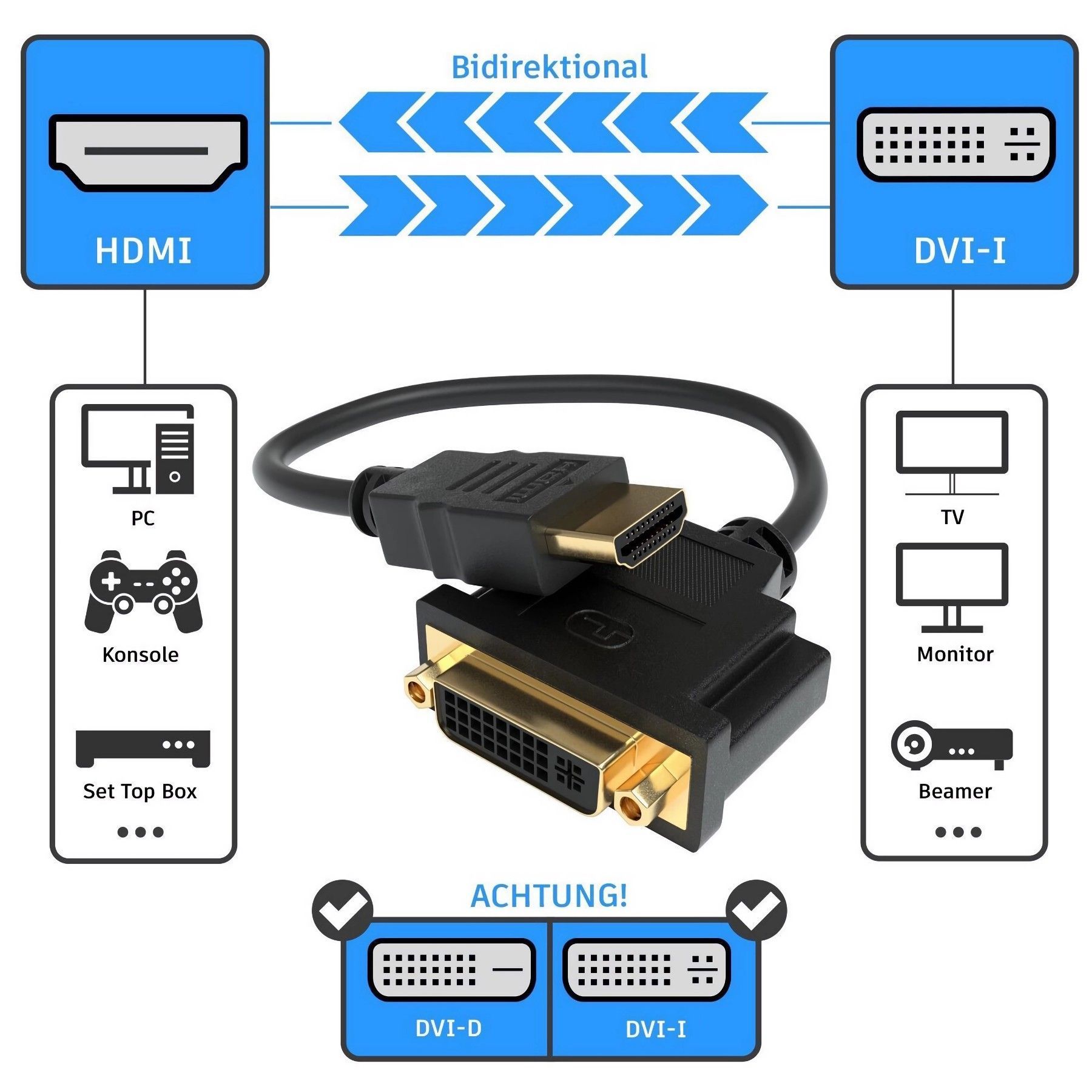C42 HDMI zu DVI Adapter DVI-I (24 + 5) Buchse auf HDMI Stecker 4K 1080P Full HD 3D