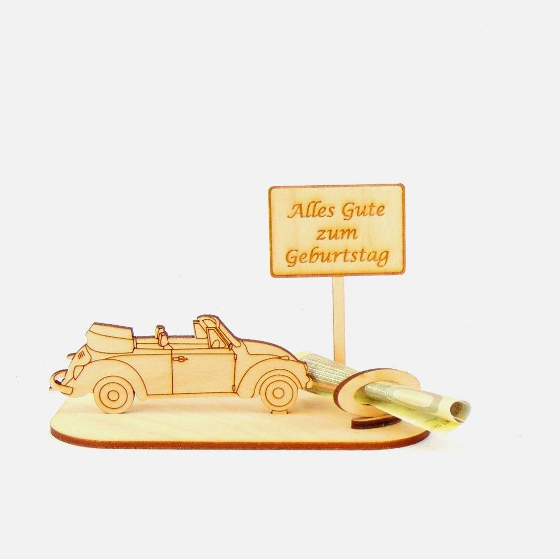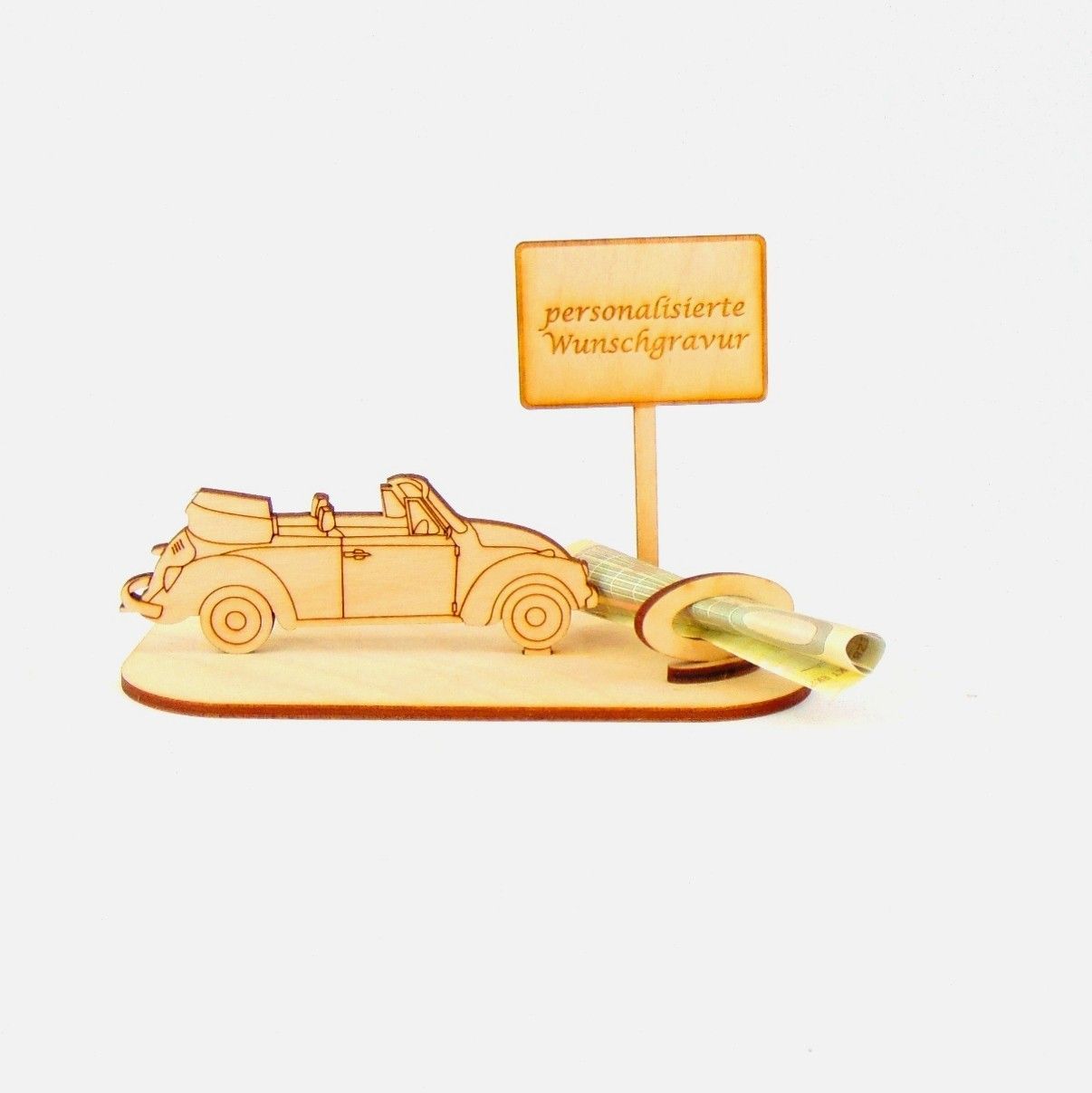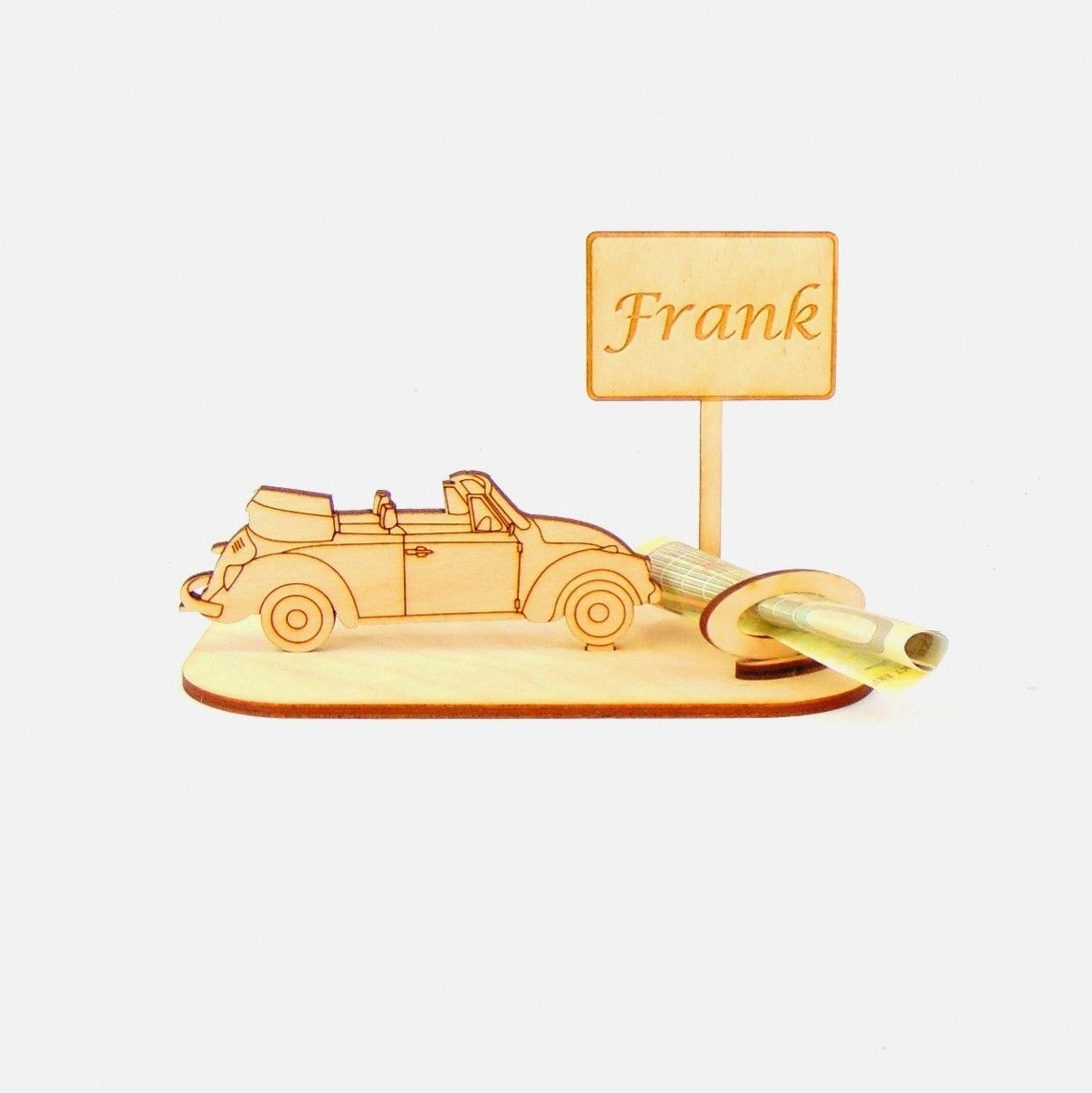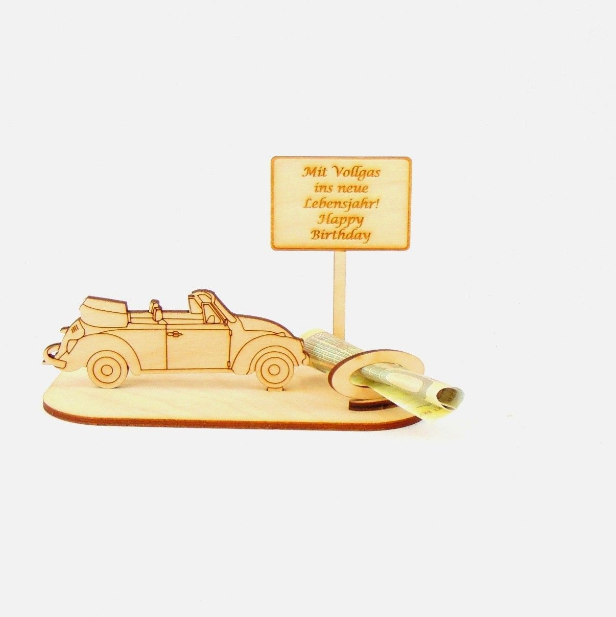 Cabrio / Auto Geld und Gutschein Geschenk aus Holz "Geburtstag" Personalisiert-K35-