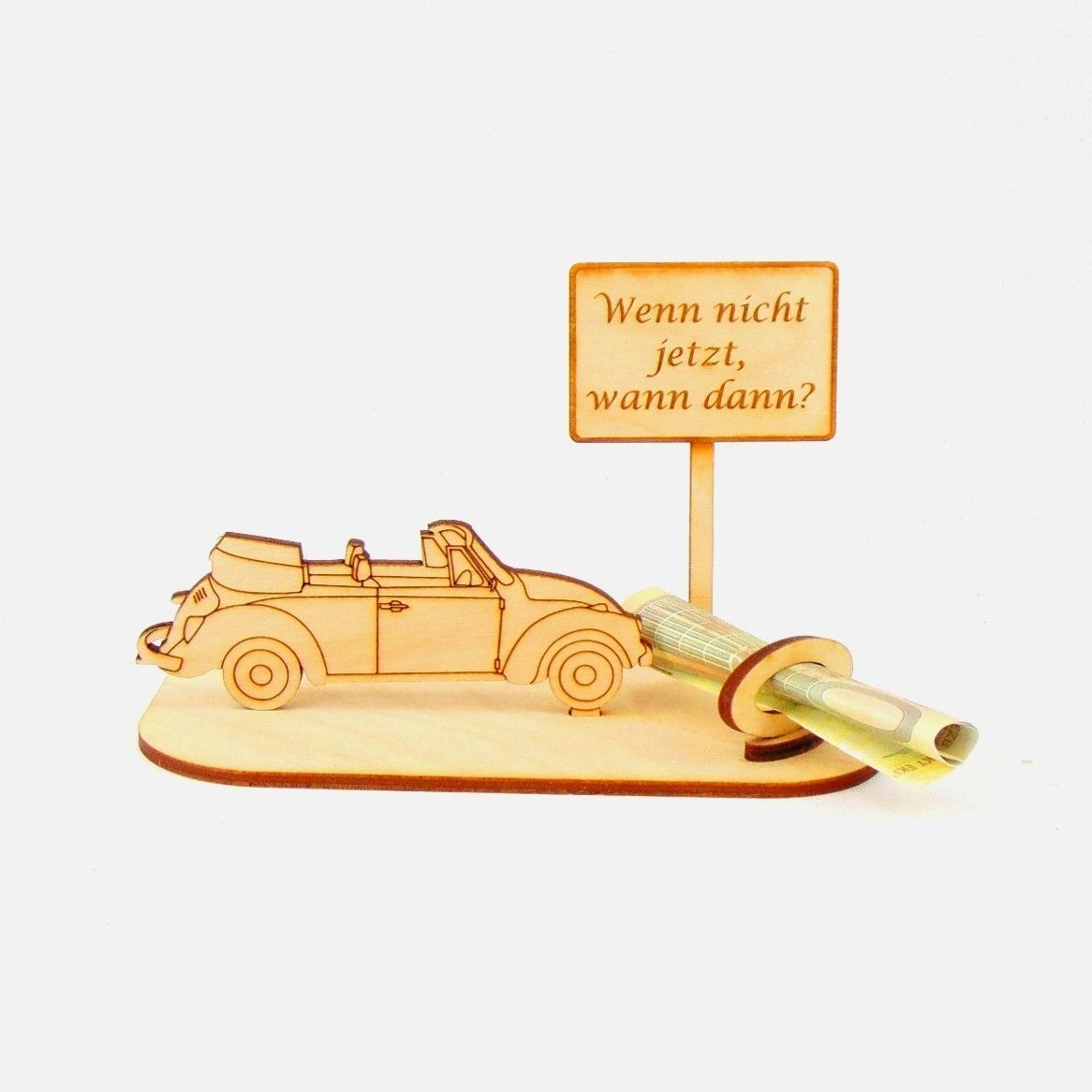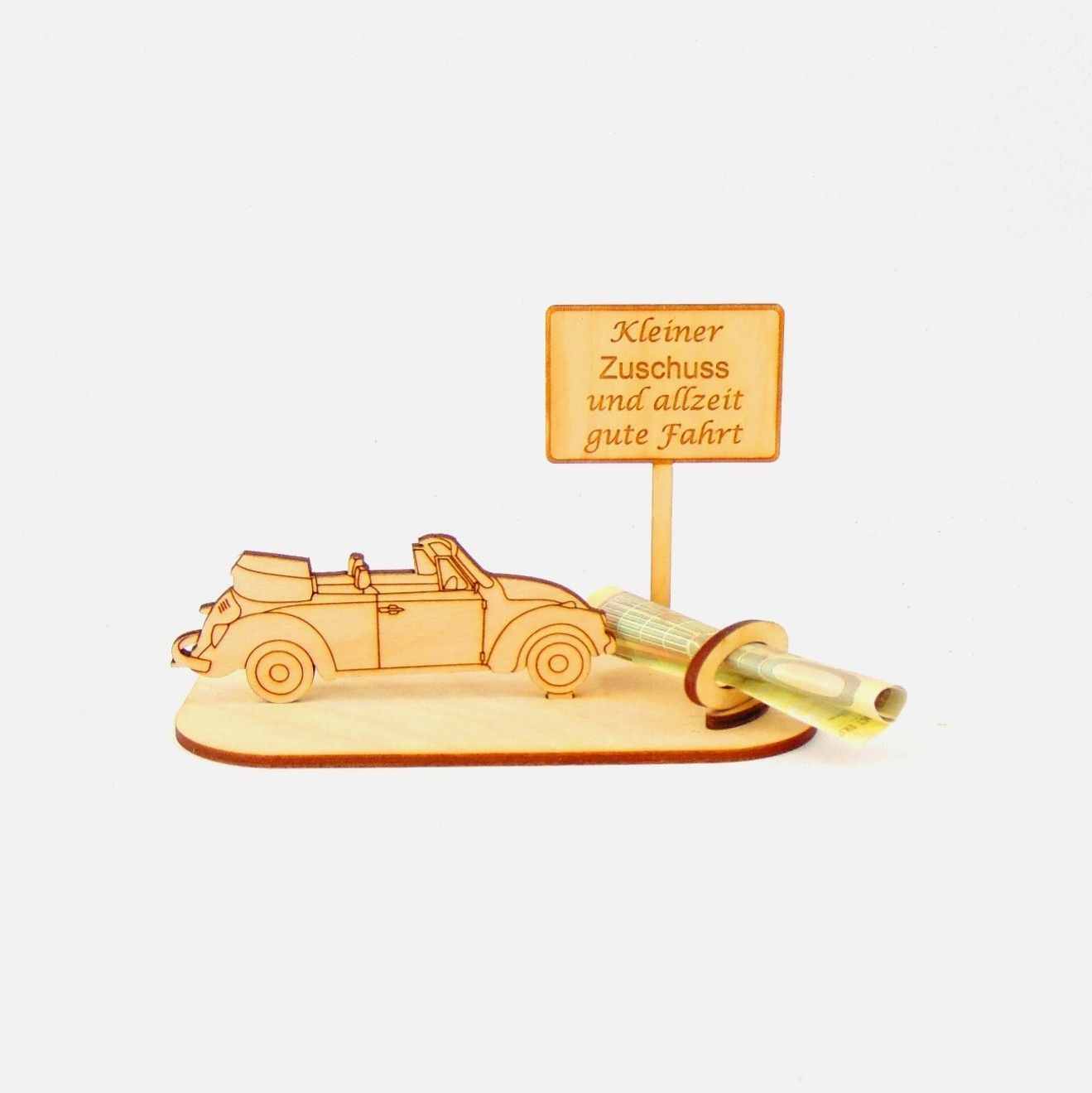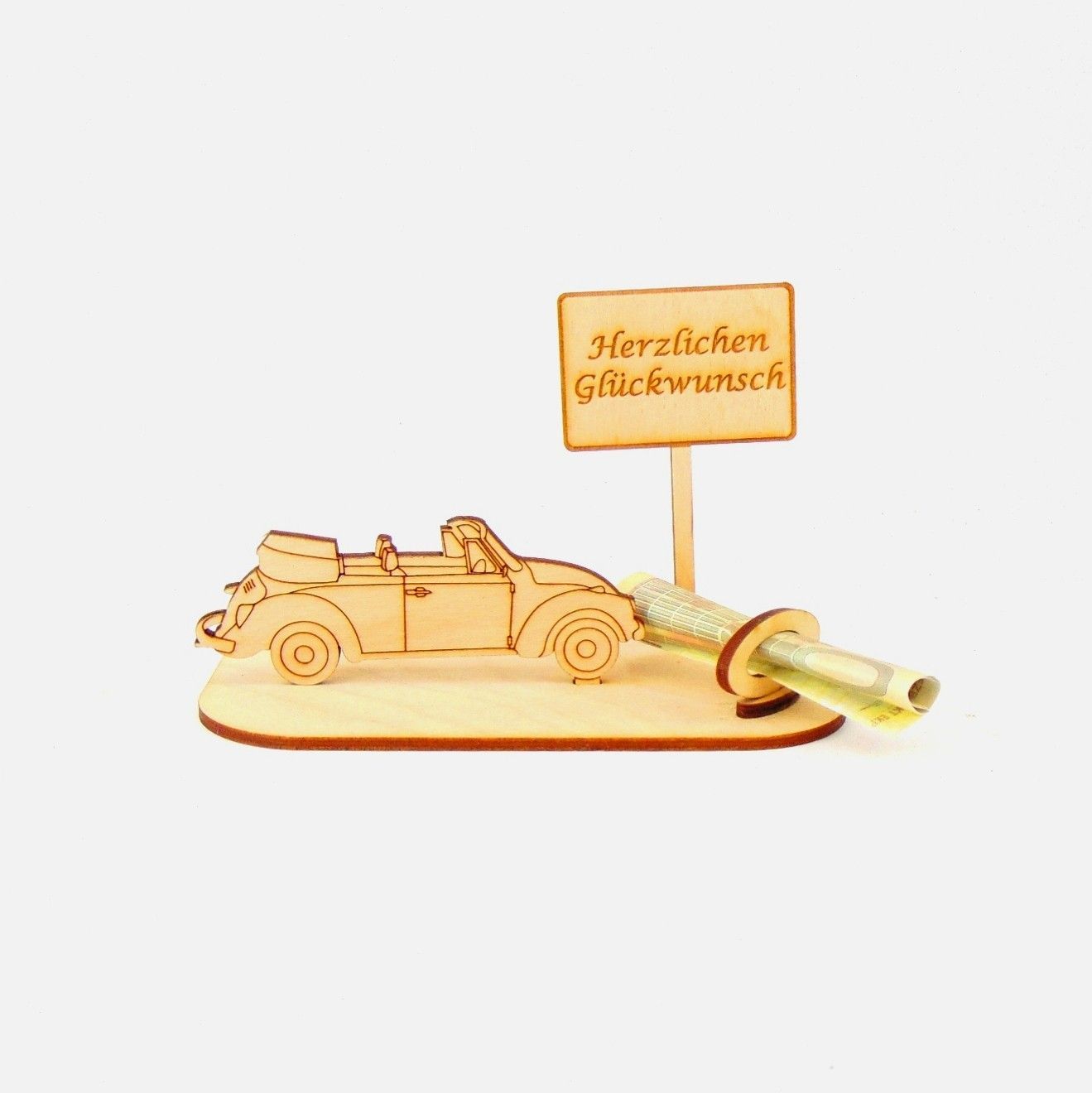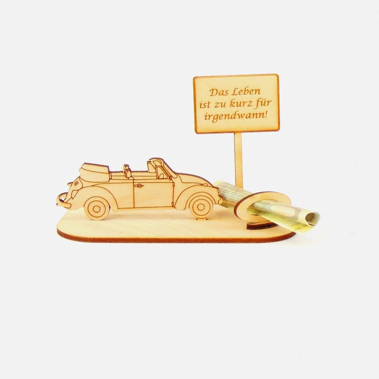 Cabrio / Auto Geld und Gutschein Geschenk aus Holz "Geburtstag" Personalisiert-K35-