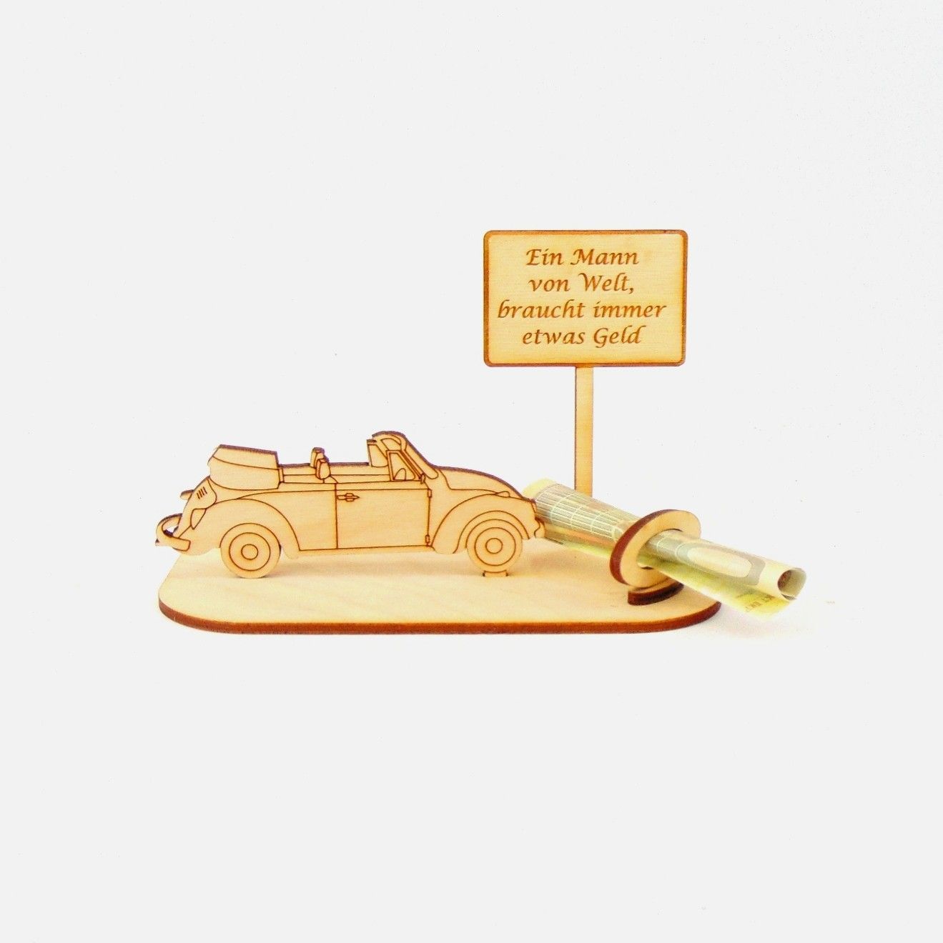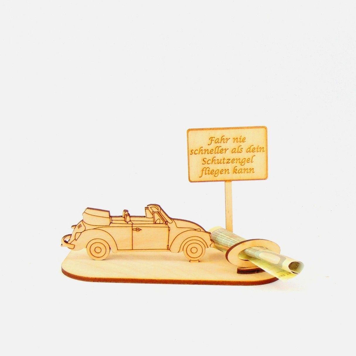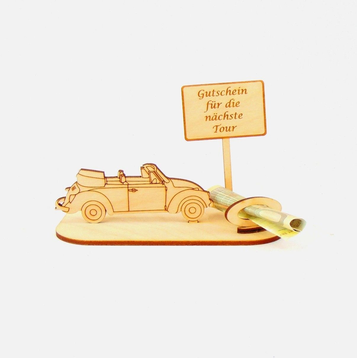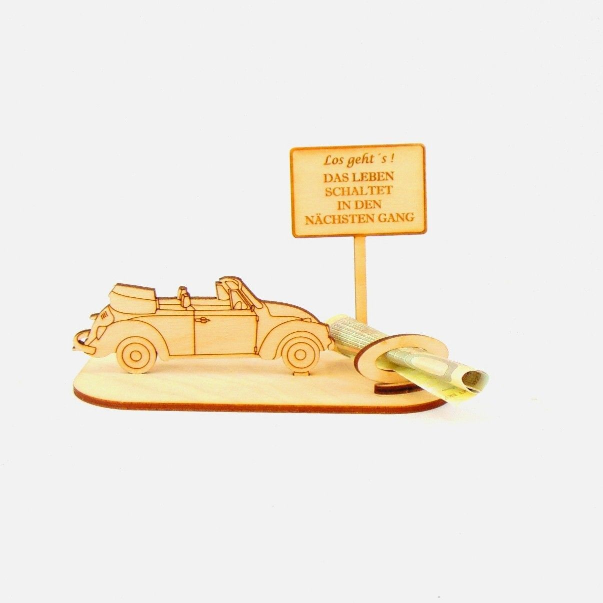 Cabrio / Auto Geld und Gutschein Geschenk aus Holz "Geburtstag" Personalisiert-K35-