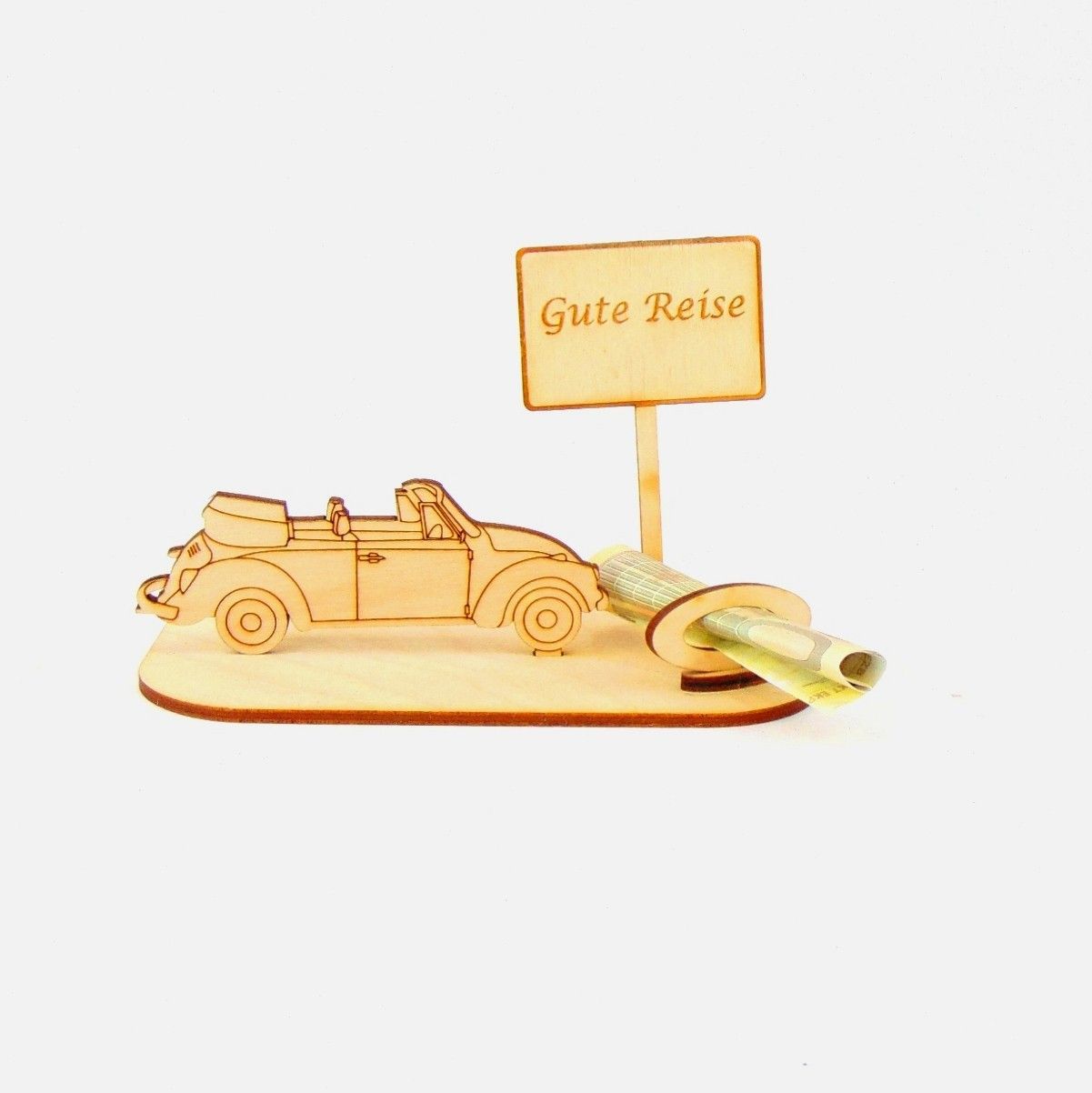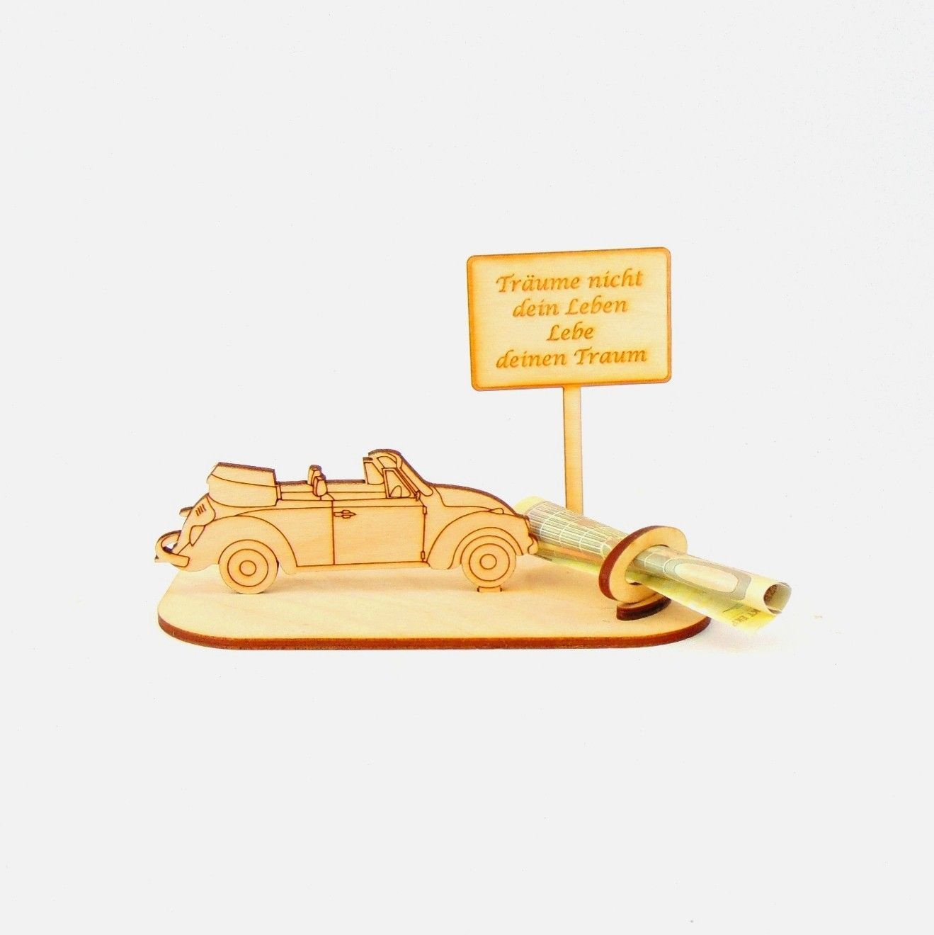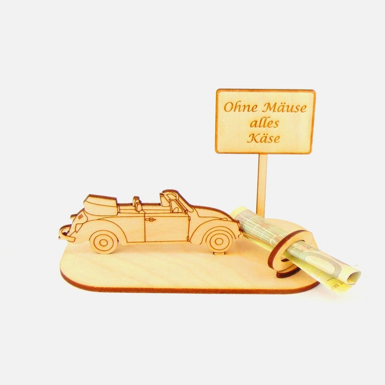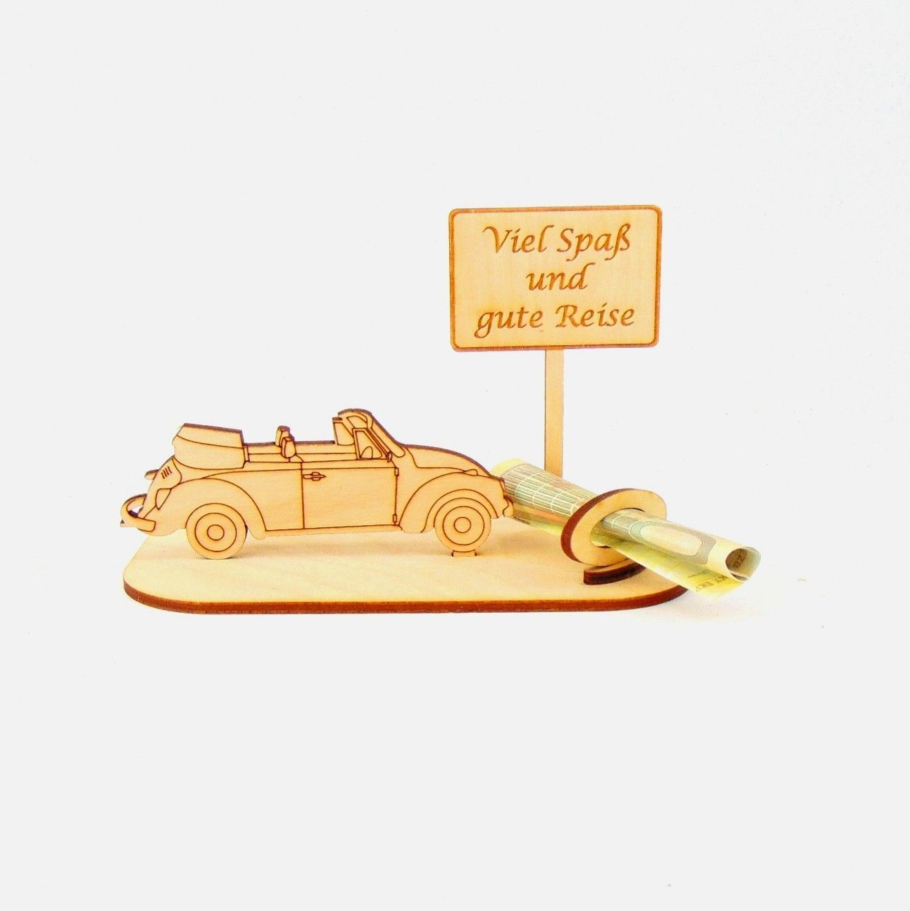 Cabrio / Auto Geld und Gutschein Geschenk aus Holz "Geburtstag" Personalisiert-K35-