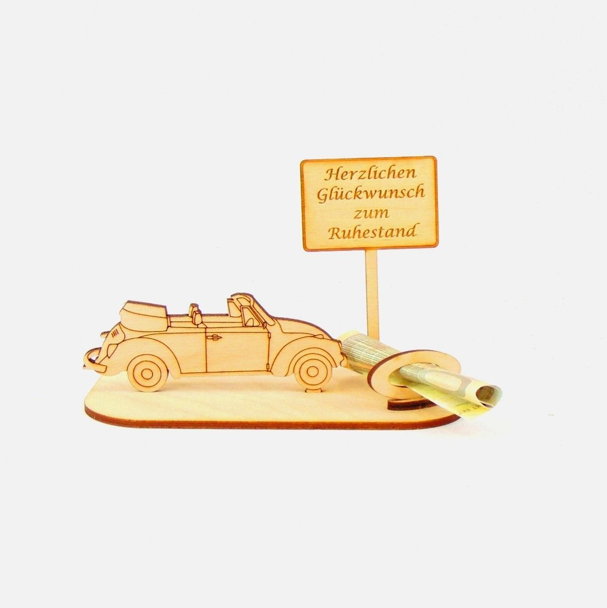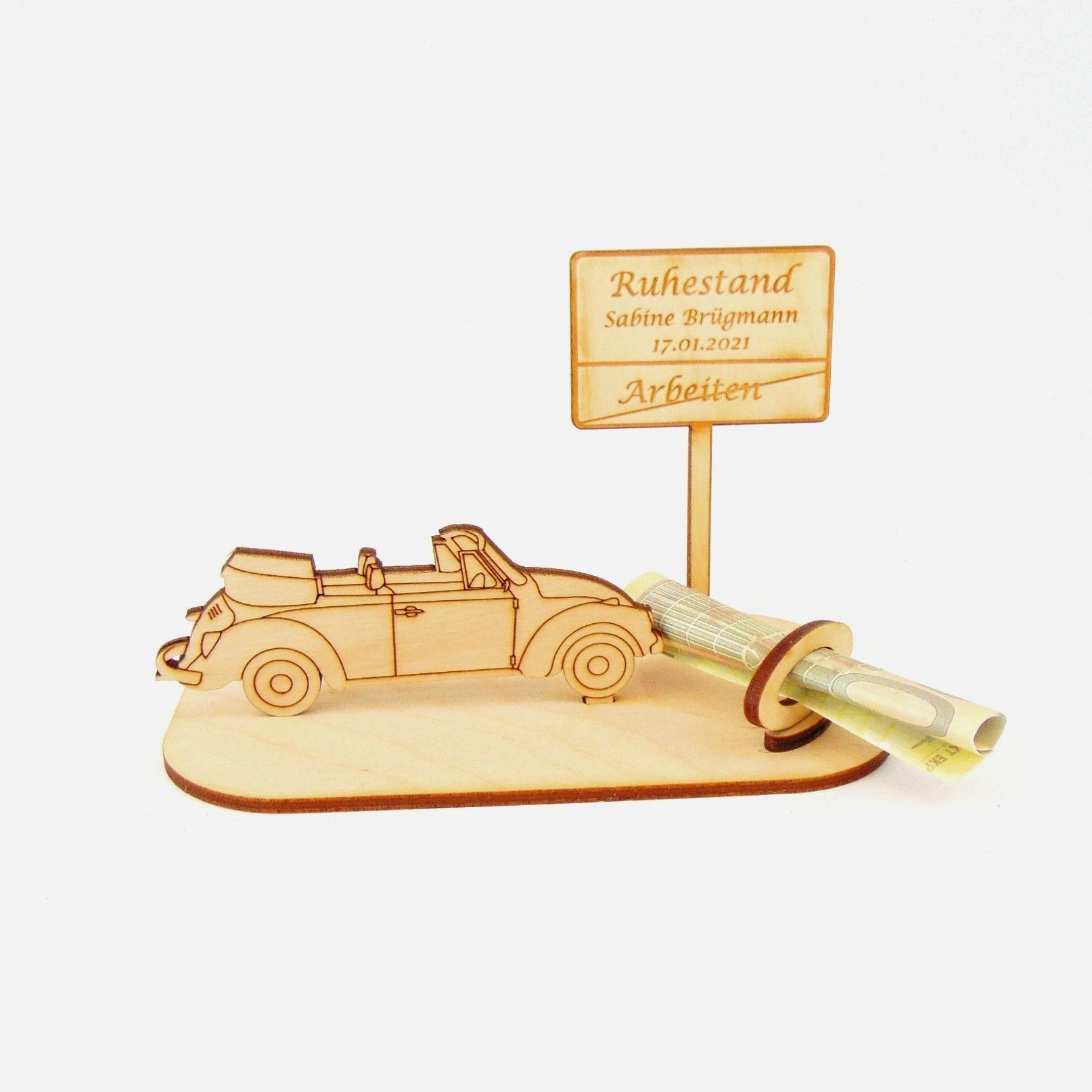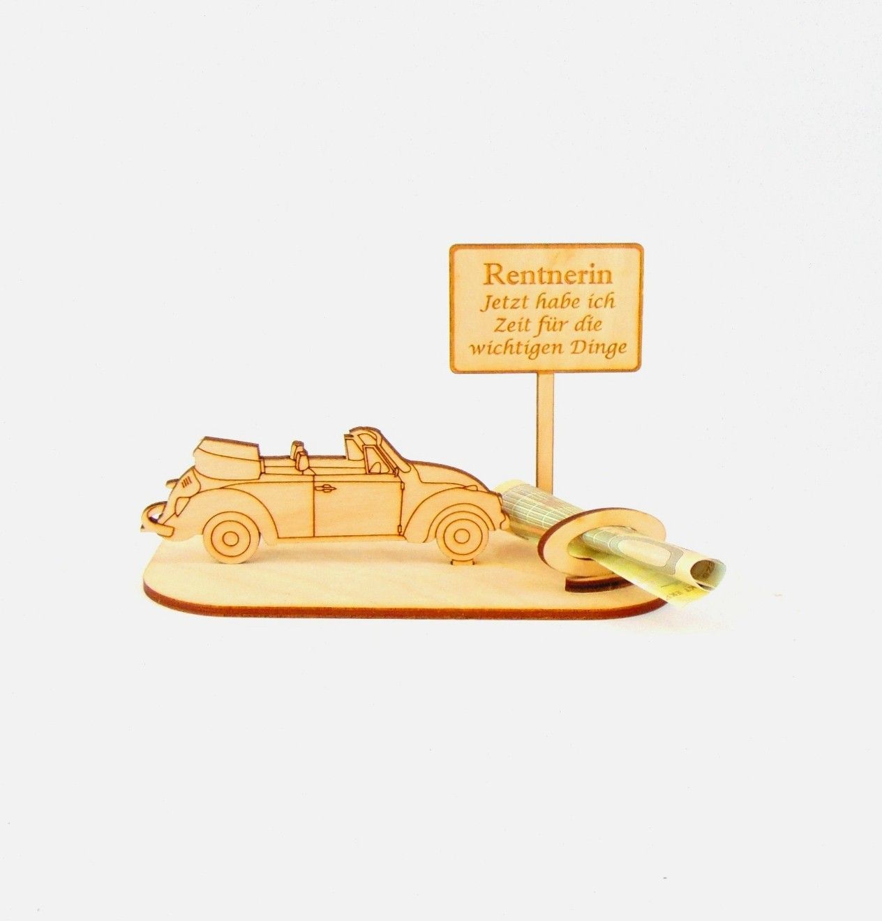 Cabrio / Auto Geld und/ oder Gutschein Geschenk aus Holz "Rente" Personalisiert-K35-