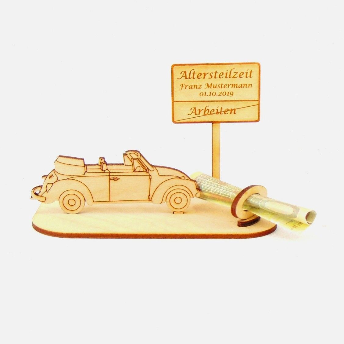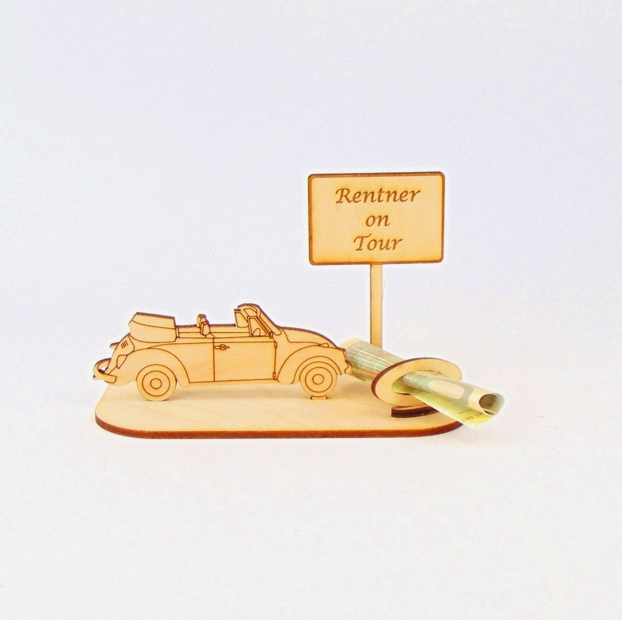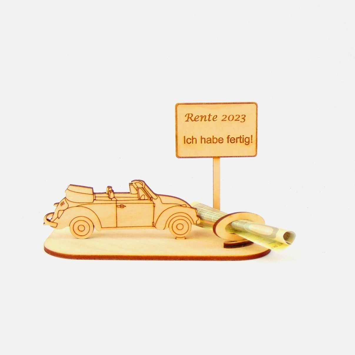 Cabrio / Auto Geld und/ oder Gutschein Geschenk aus Holz "Rente" Personalisiert-K35-