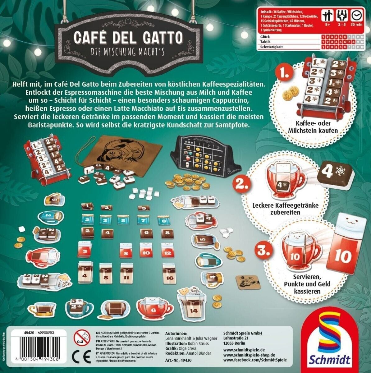 Café Del Gatto Schmidt Familienspiel Brettspiel Legespiel Kartenspiel 49430