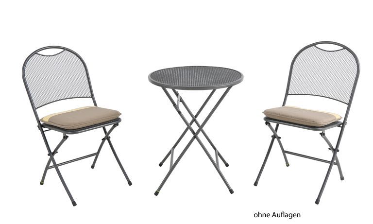 MWH Cafe Latte Set - 2 Sessel und Tisch 60 cm in eisengrau, Stahl elotherm beschichtung