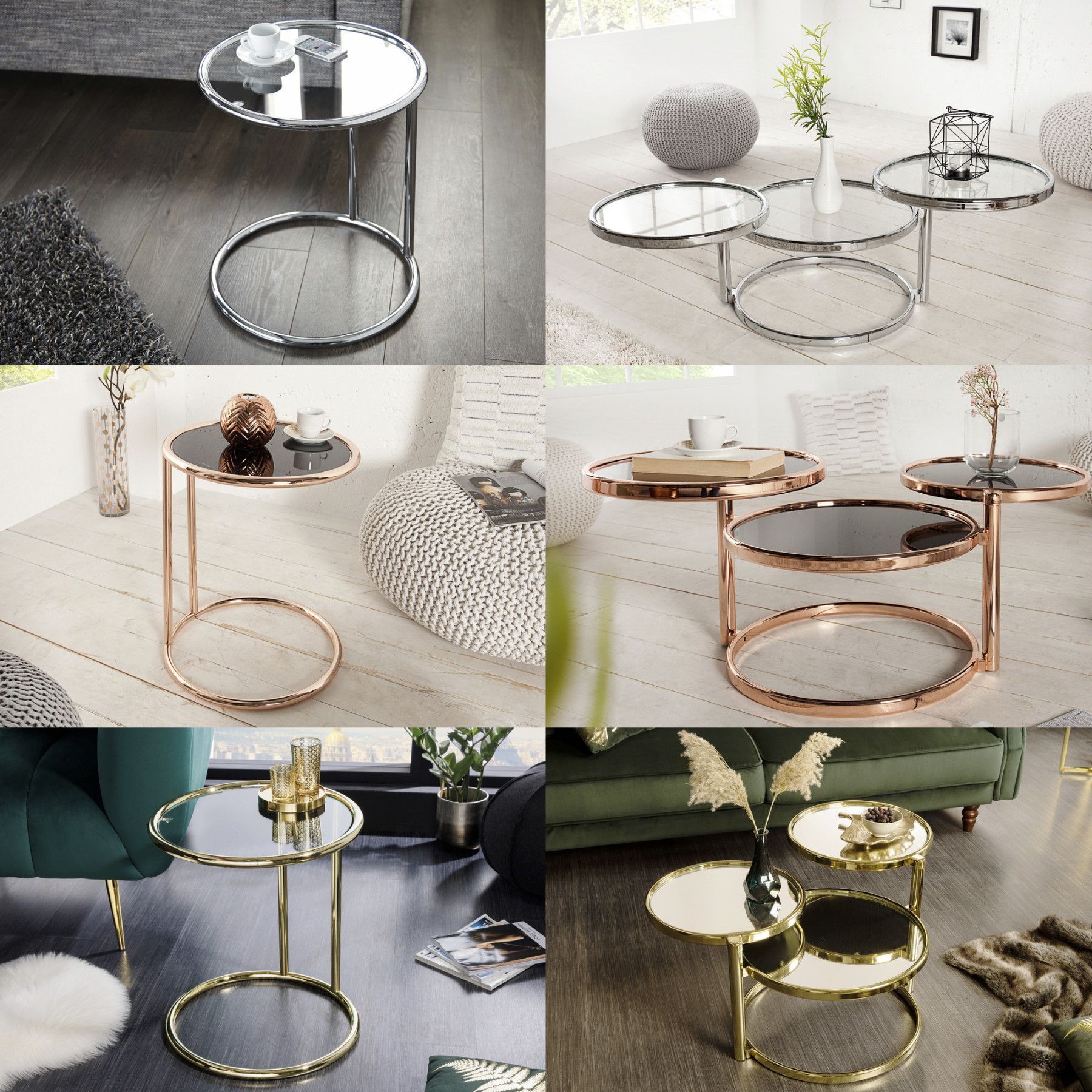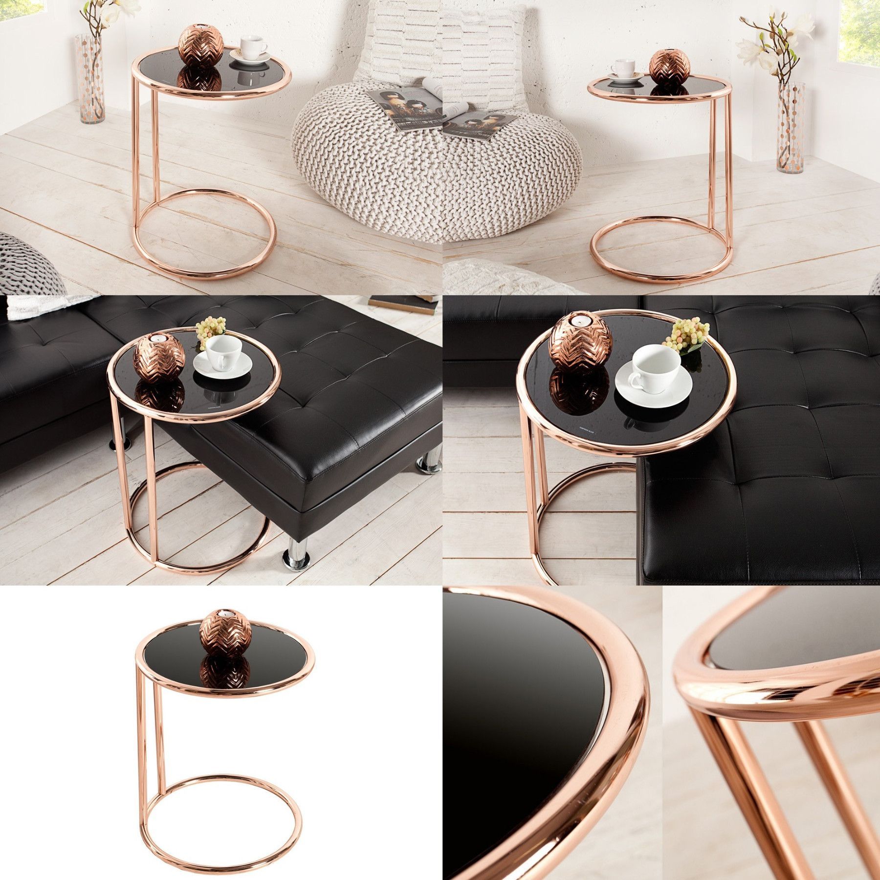 cagü: Art Deco Design Beistelltisch Couchtisch (SATURNUS] Kupfer & Glas 55cm Höhe