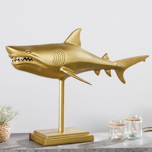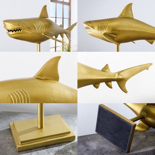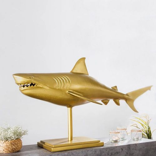 cagü: Design Deko Skulptur Tigerhai Hai NICO Gold mit Standfuß Aluminium 103cm