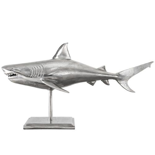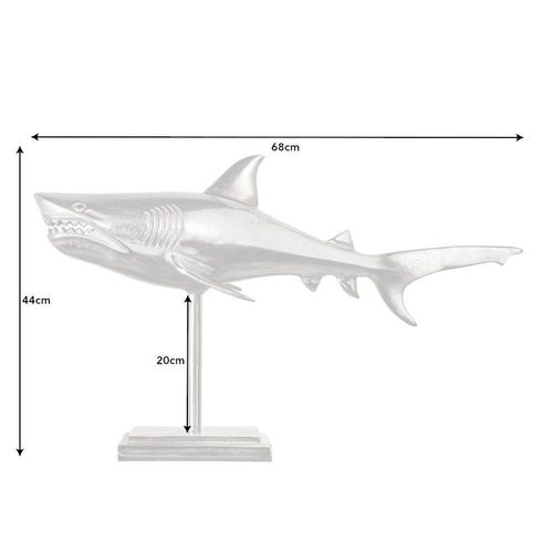 cagü: Design Deko Skulptur Tigerhai Hai NICO Silber mit Standfuß Aluminium 103cm