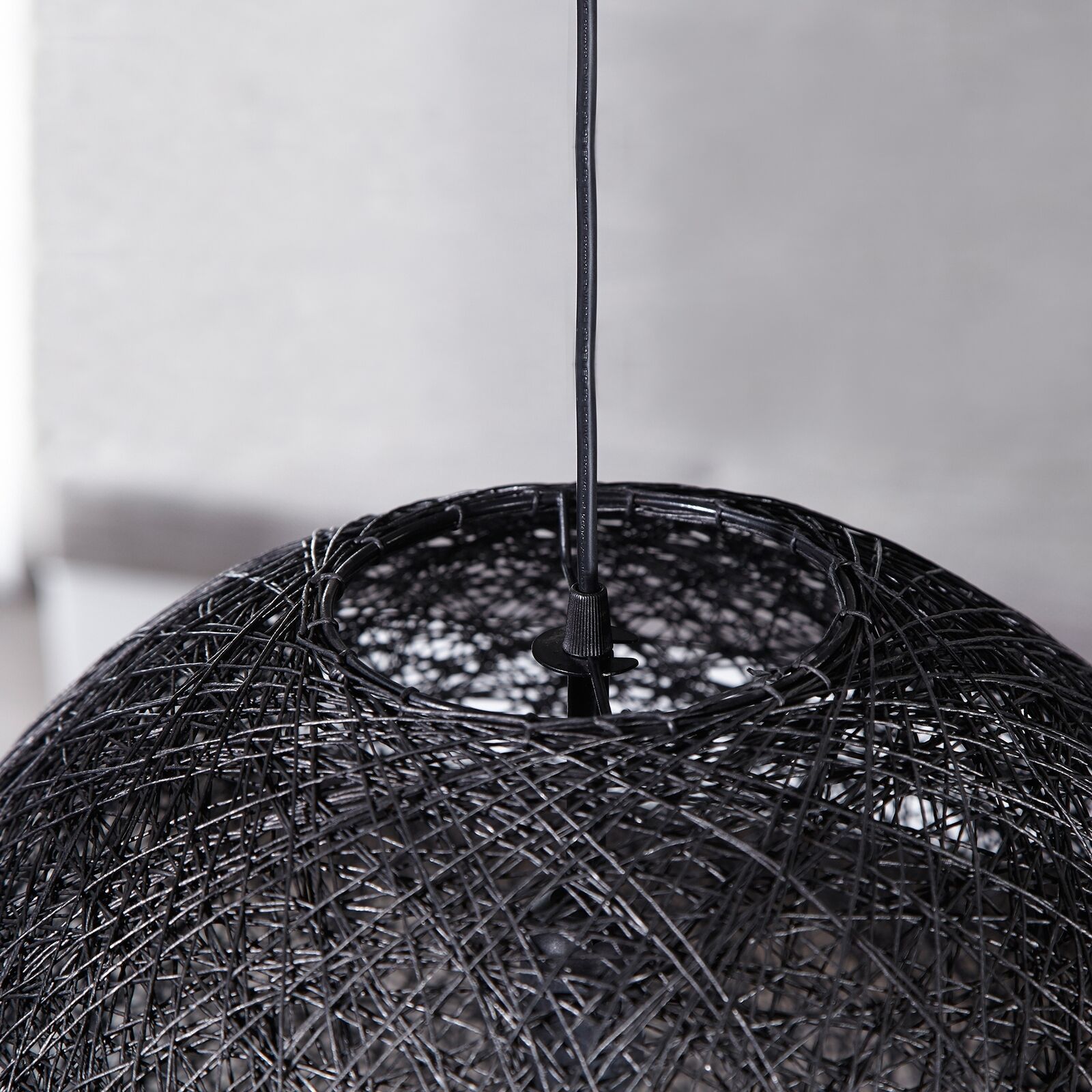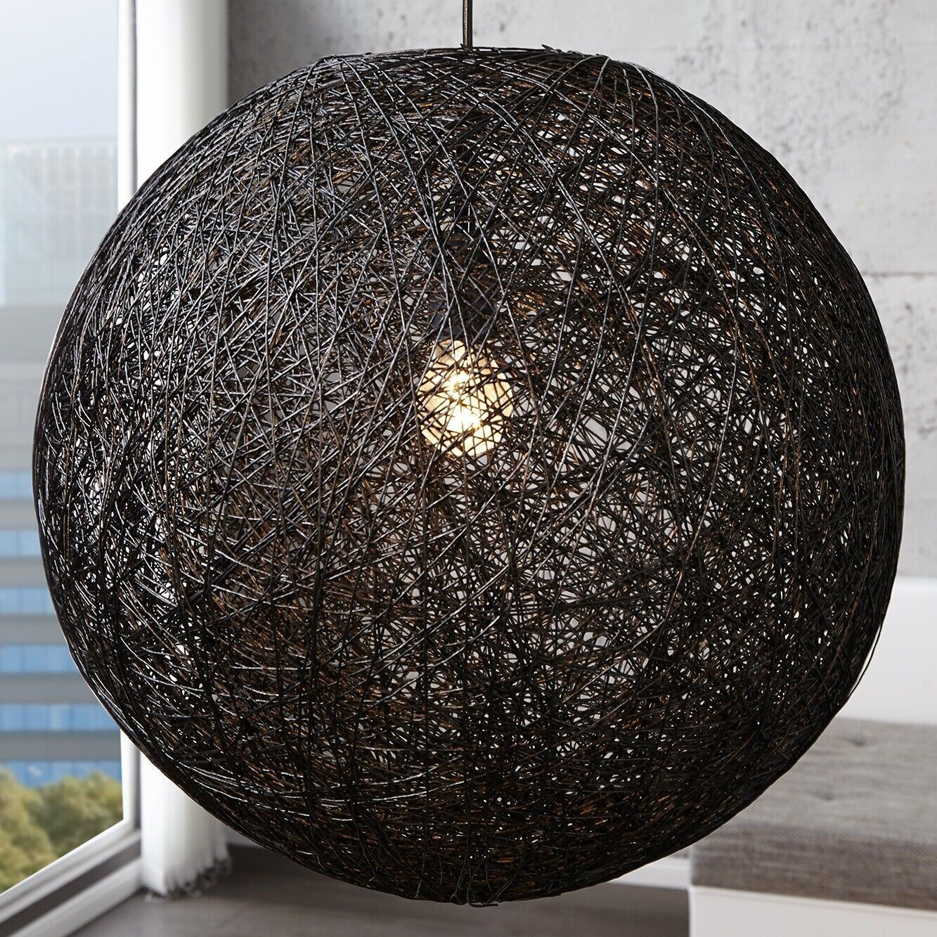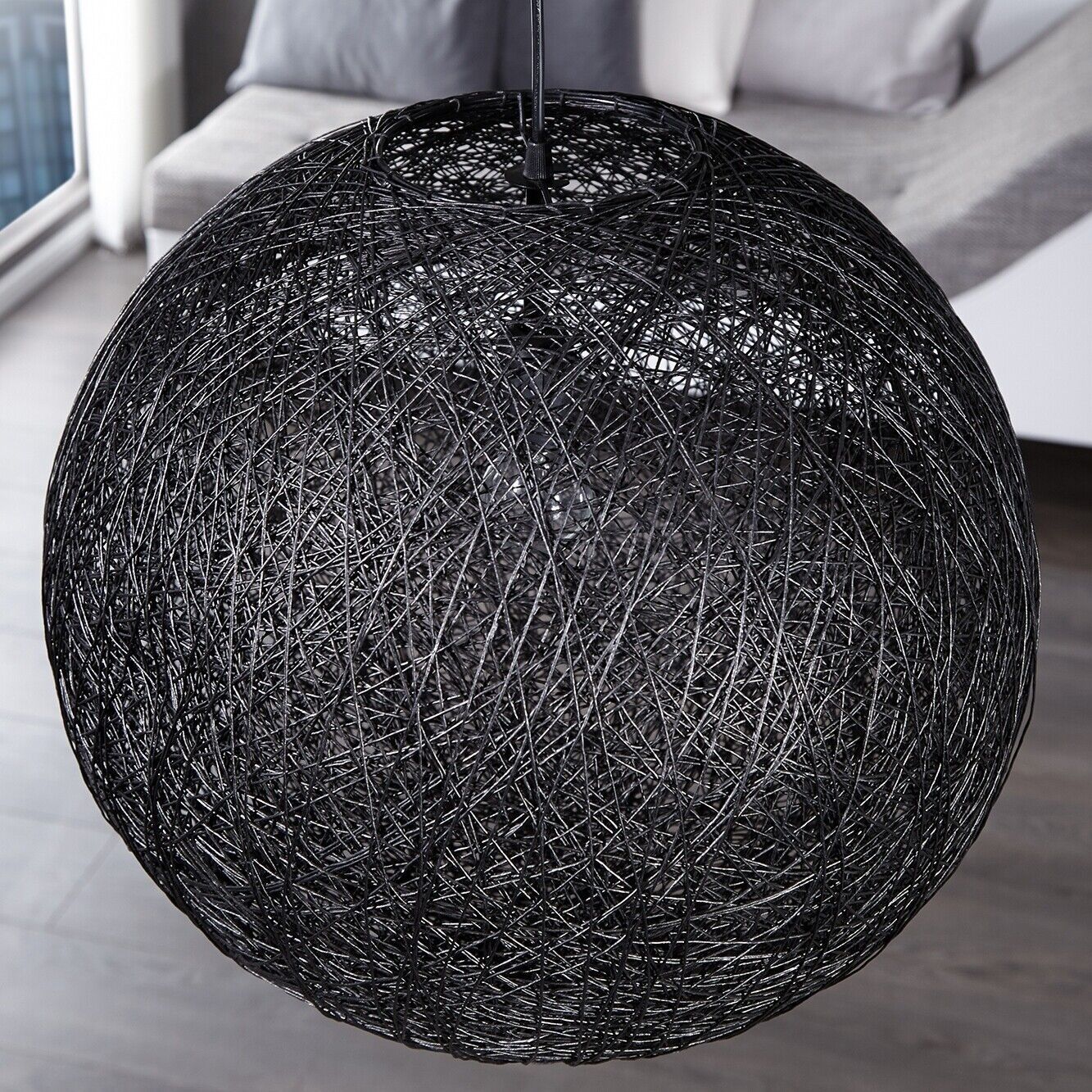 cagü - Hängelampe Deckenleuchte Pendelleuchte [KOKON] Schwarz Hanf Geflecht 60cm