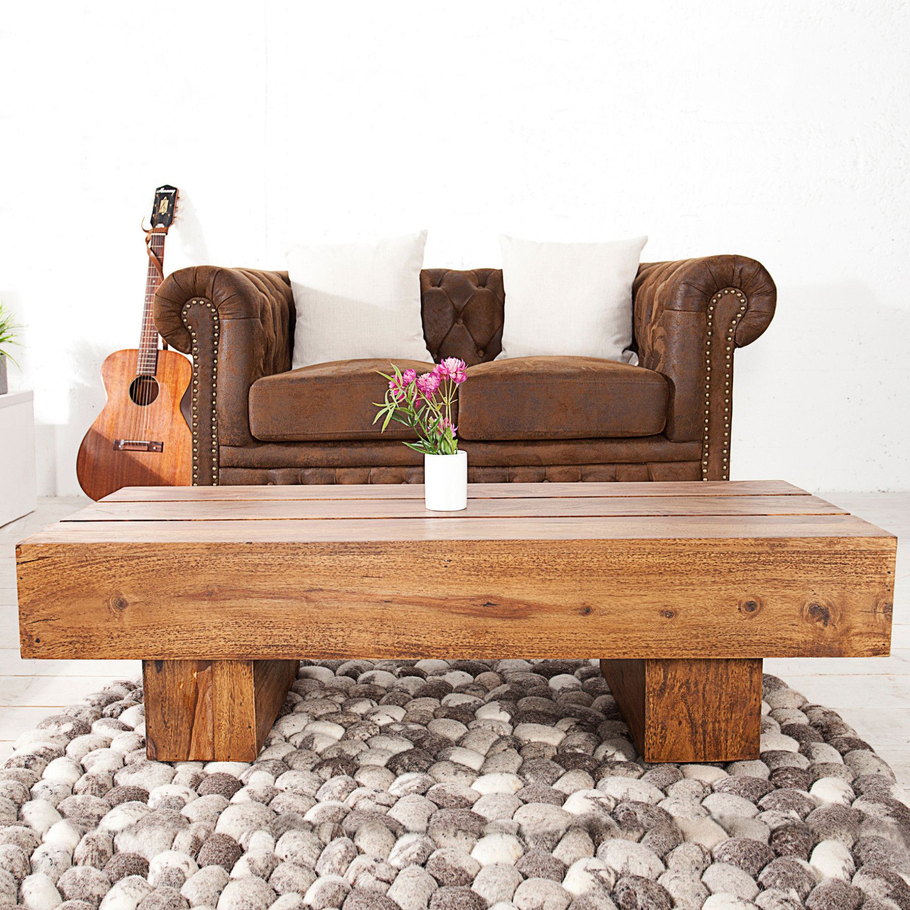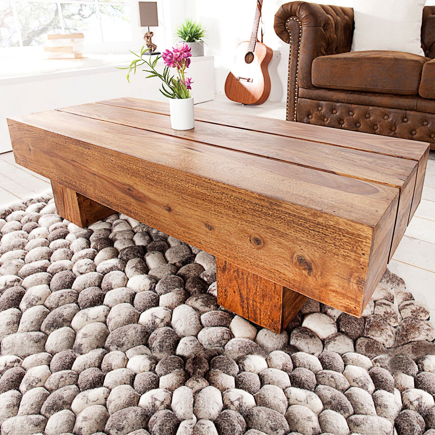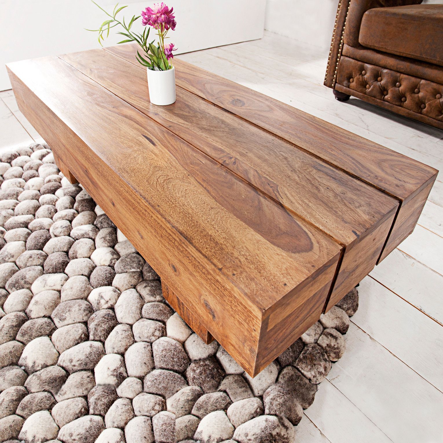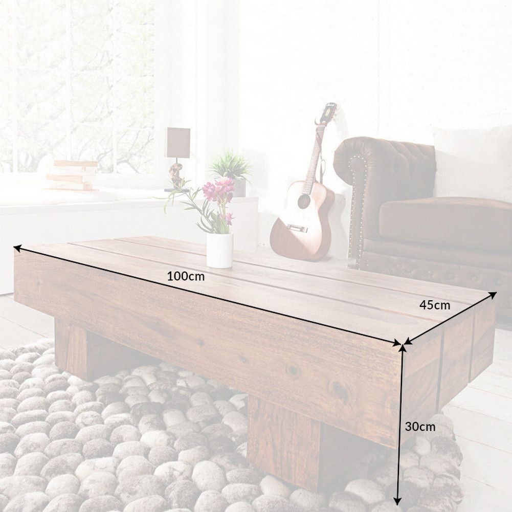 cagü: Couchtisch Beistelltisch (SALEM] Sheesham MASSIV HOLZ Gewachst 100cm x 45cm NEU