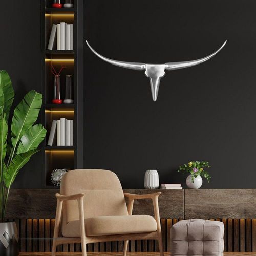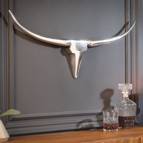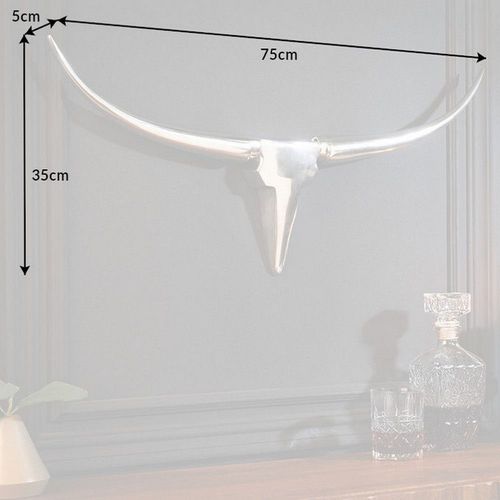 cagü: Deko Design Stierkopf Schädel Geweih (ARIZONA] Silber Poliertes Aluminium 75cm