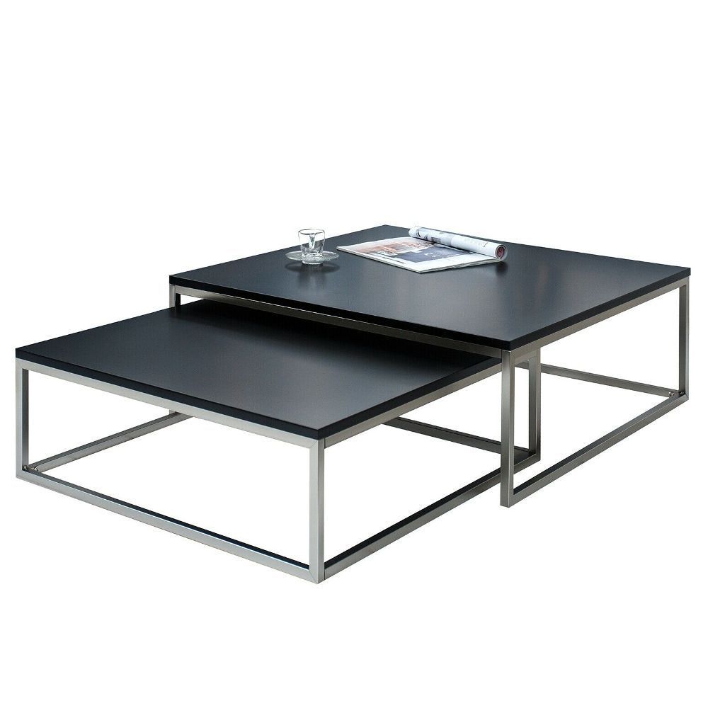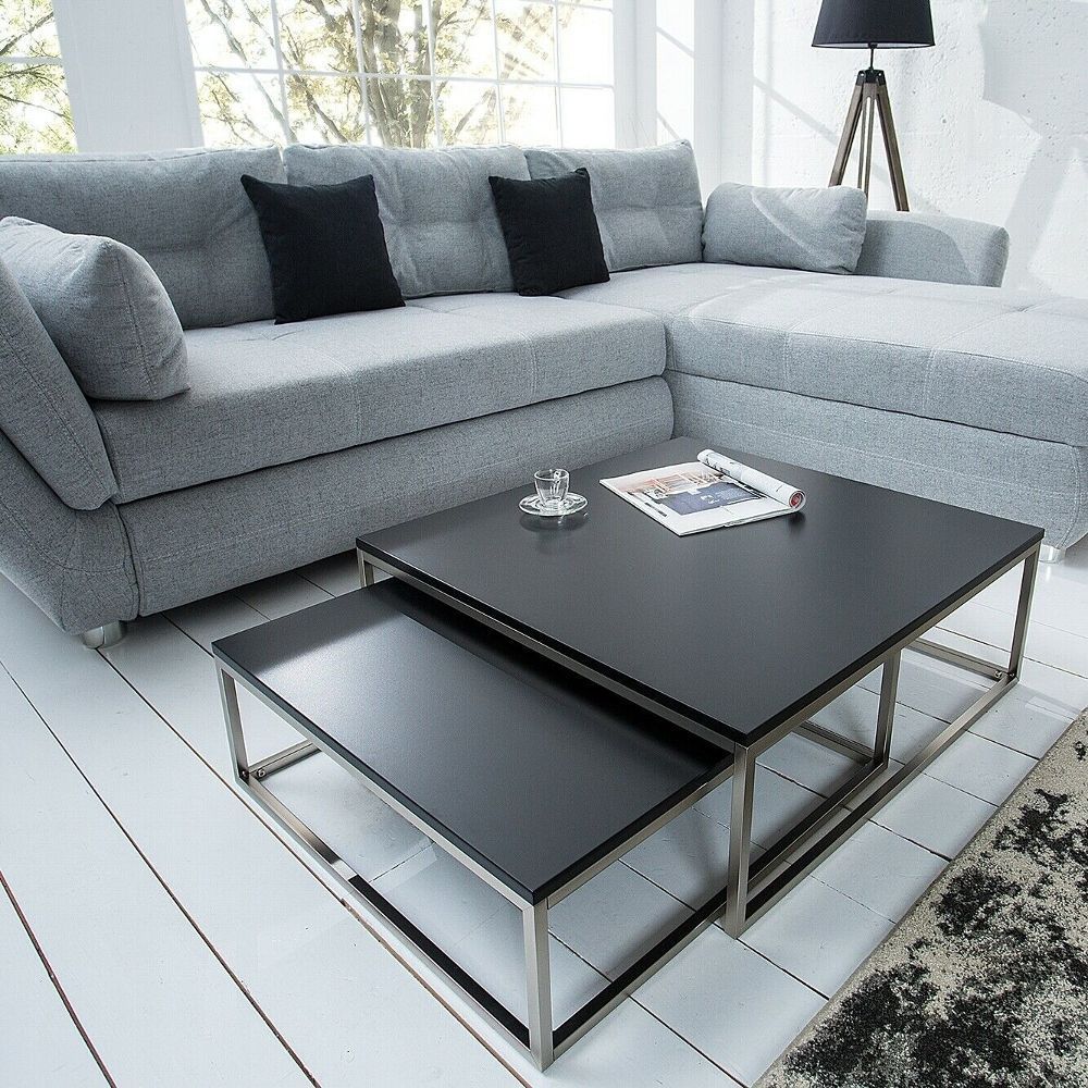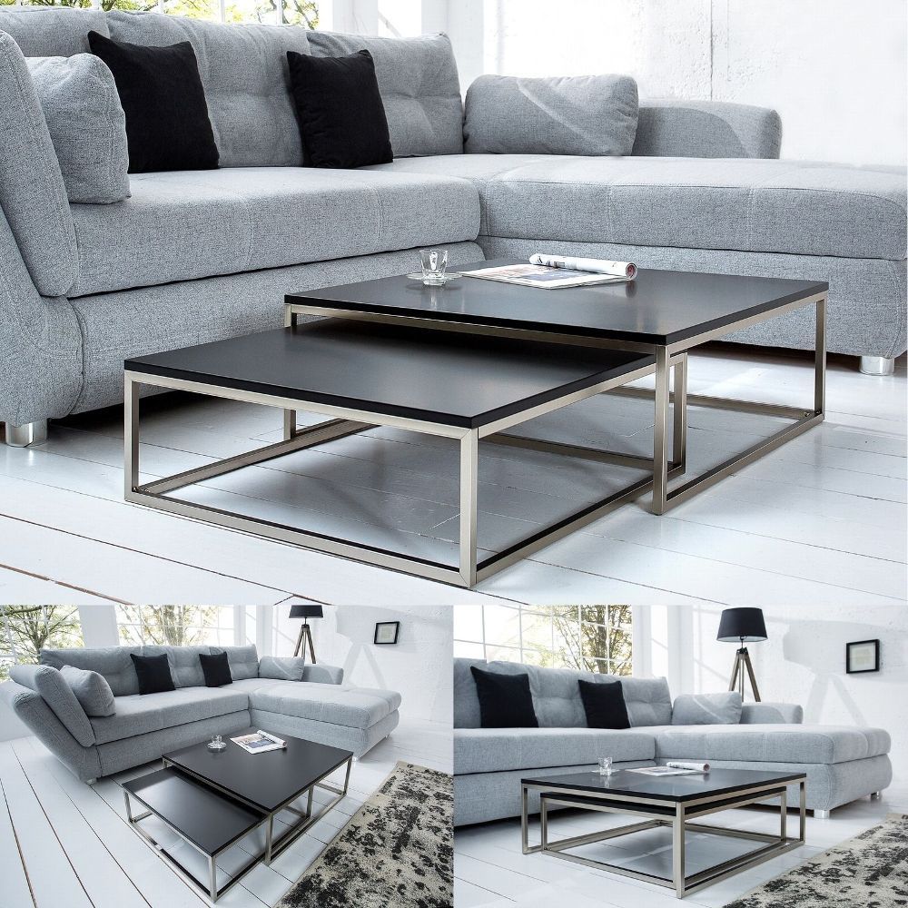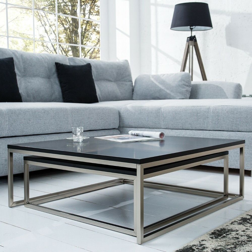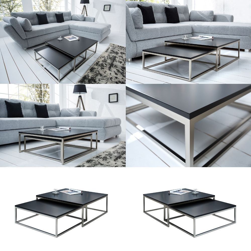 cagü: Design 2er Set Couchtische [MAILAND] Schwarz & Edelstahl gebürstet 75/65cm