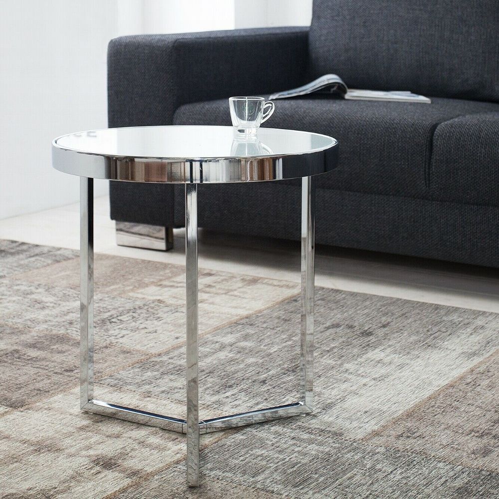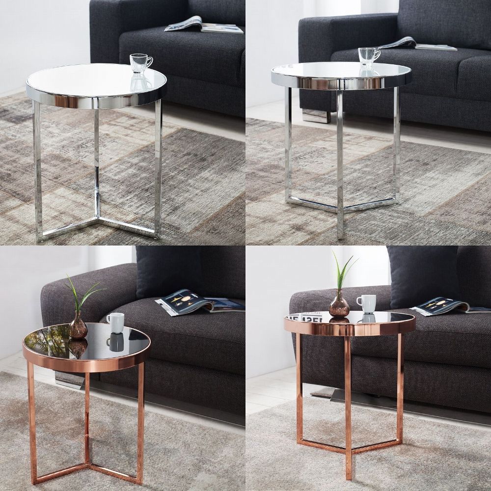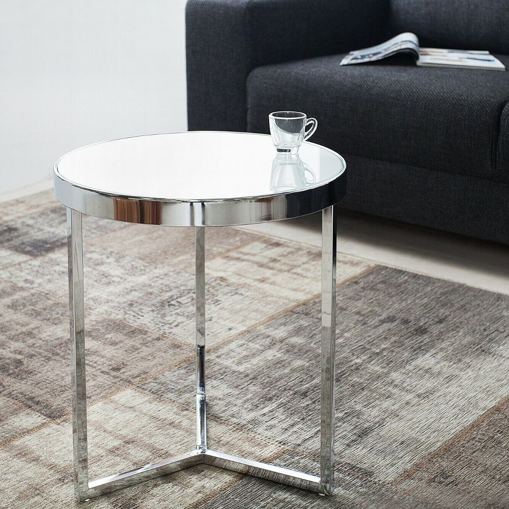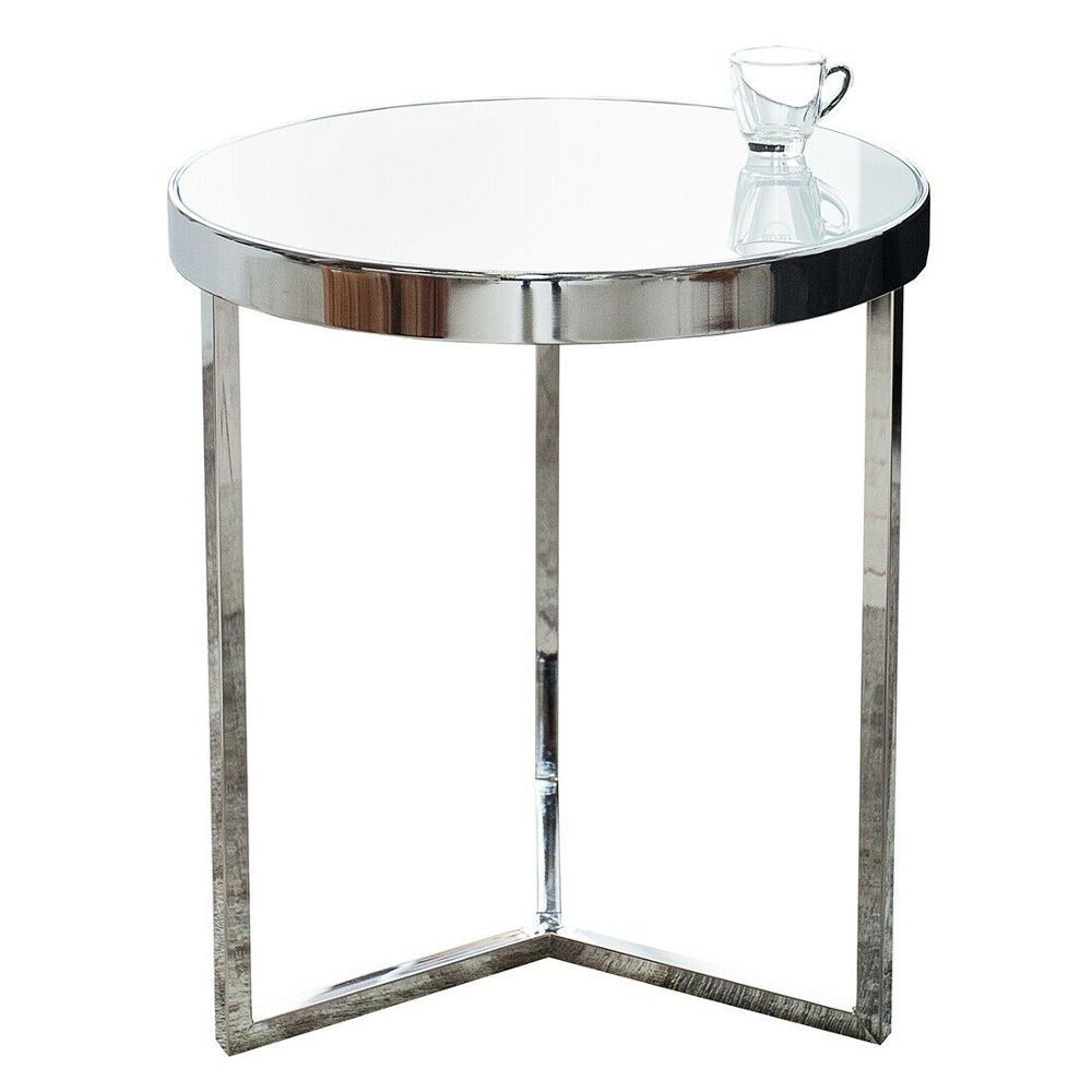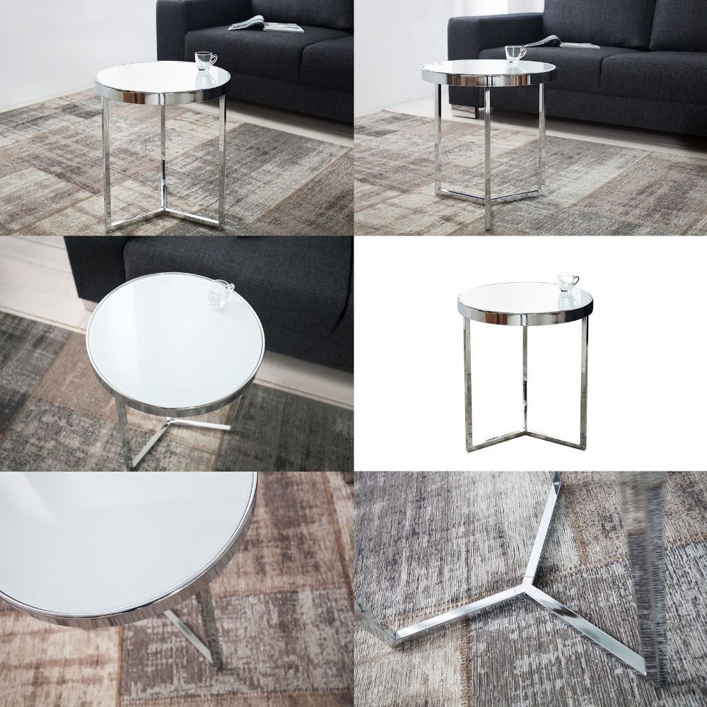 cagü: Design Art Deco Beistelltisch (DIANA] Rund Chrom & Weiss Opalglasplatte 50cm