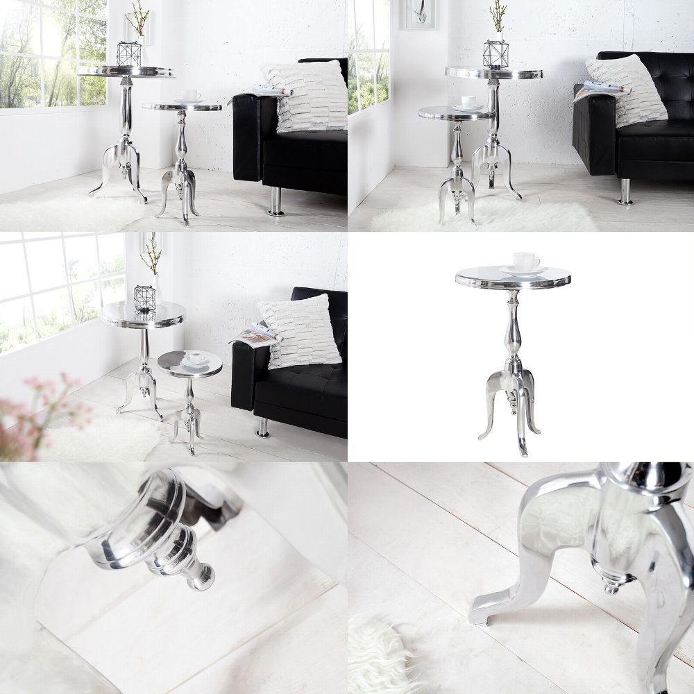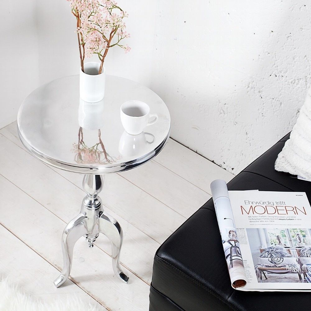 Lampen Sitzen Tische Möbel Accessoires Büro Bilder Navigation X Lampen Sitzen Tische Möbel Accessoires Büro Bilder DESIGN BAROCK BEISTELLTISCH [LAVAL] RUND SILBER aus ALUMINIUM 55cm HÖHE, NEU! Artikelmermale Farbe: Silber glänzend Material: Aluminium vernickelt Maße (ca.): 35cm x 55cm (Ø x H)