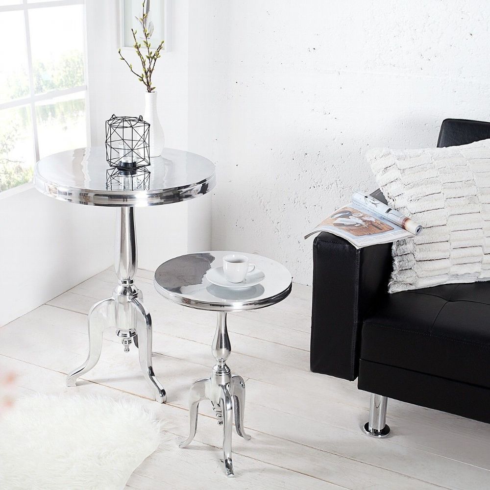 cagü: Design Barock Beistelltisch (LAVAL] Rund SILBER aus Aluminium 55cm Höhe, NEU!