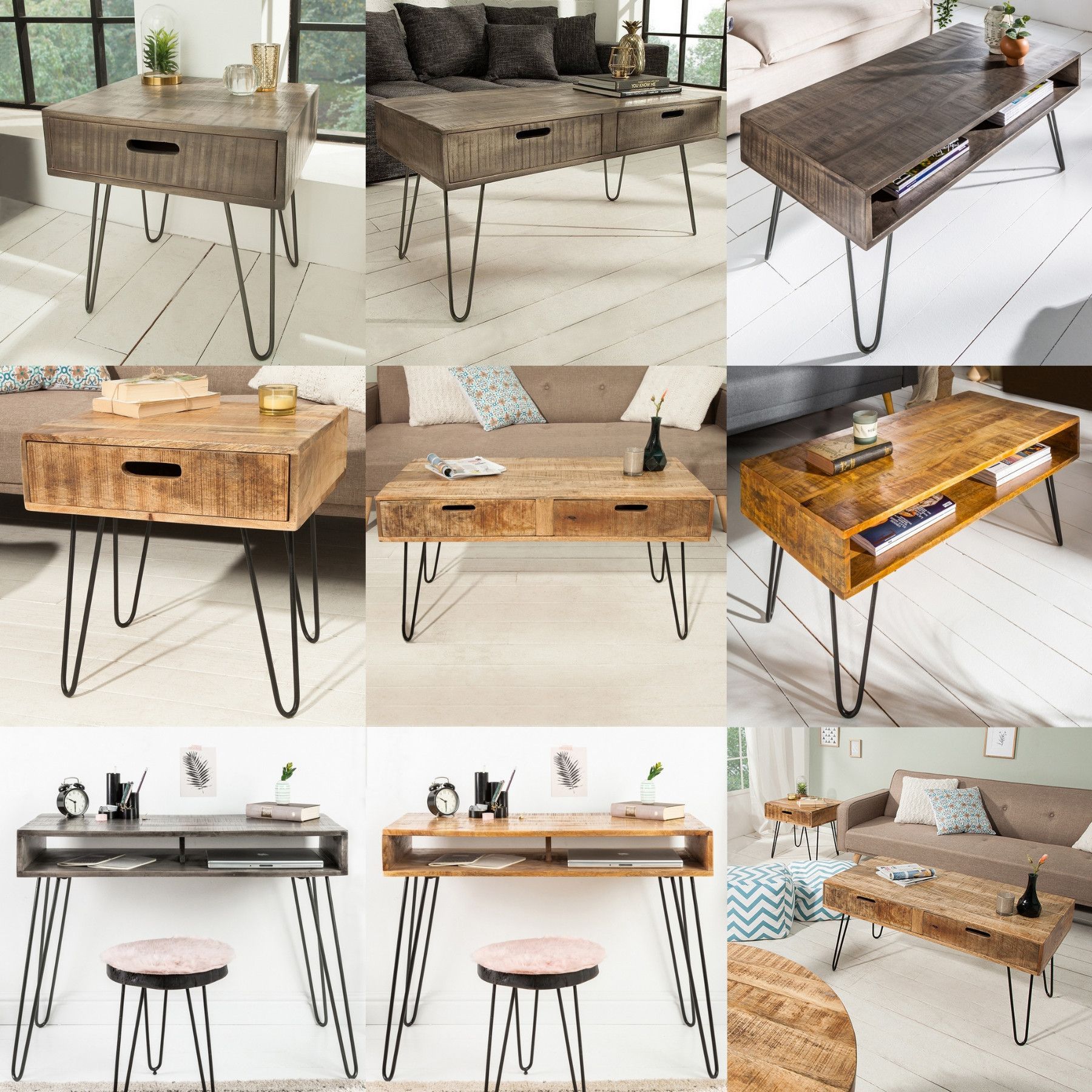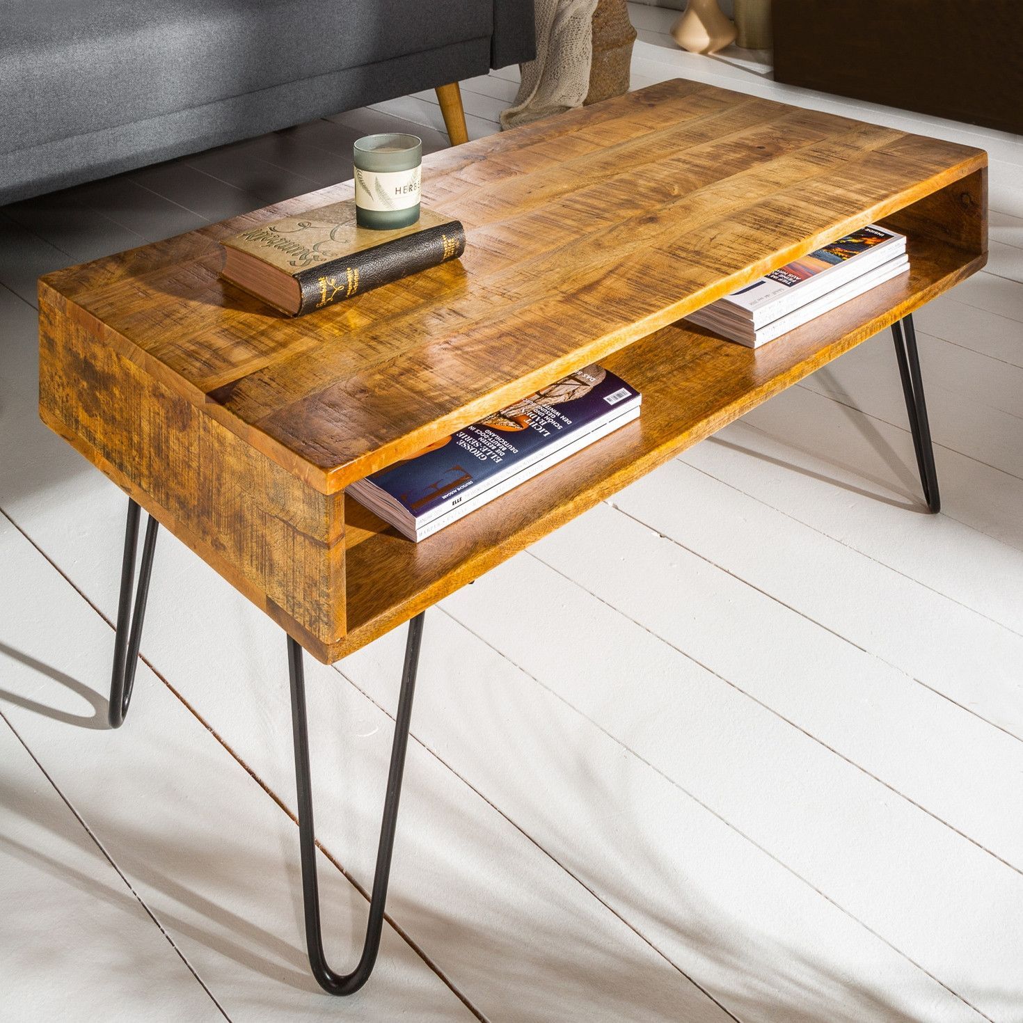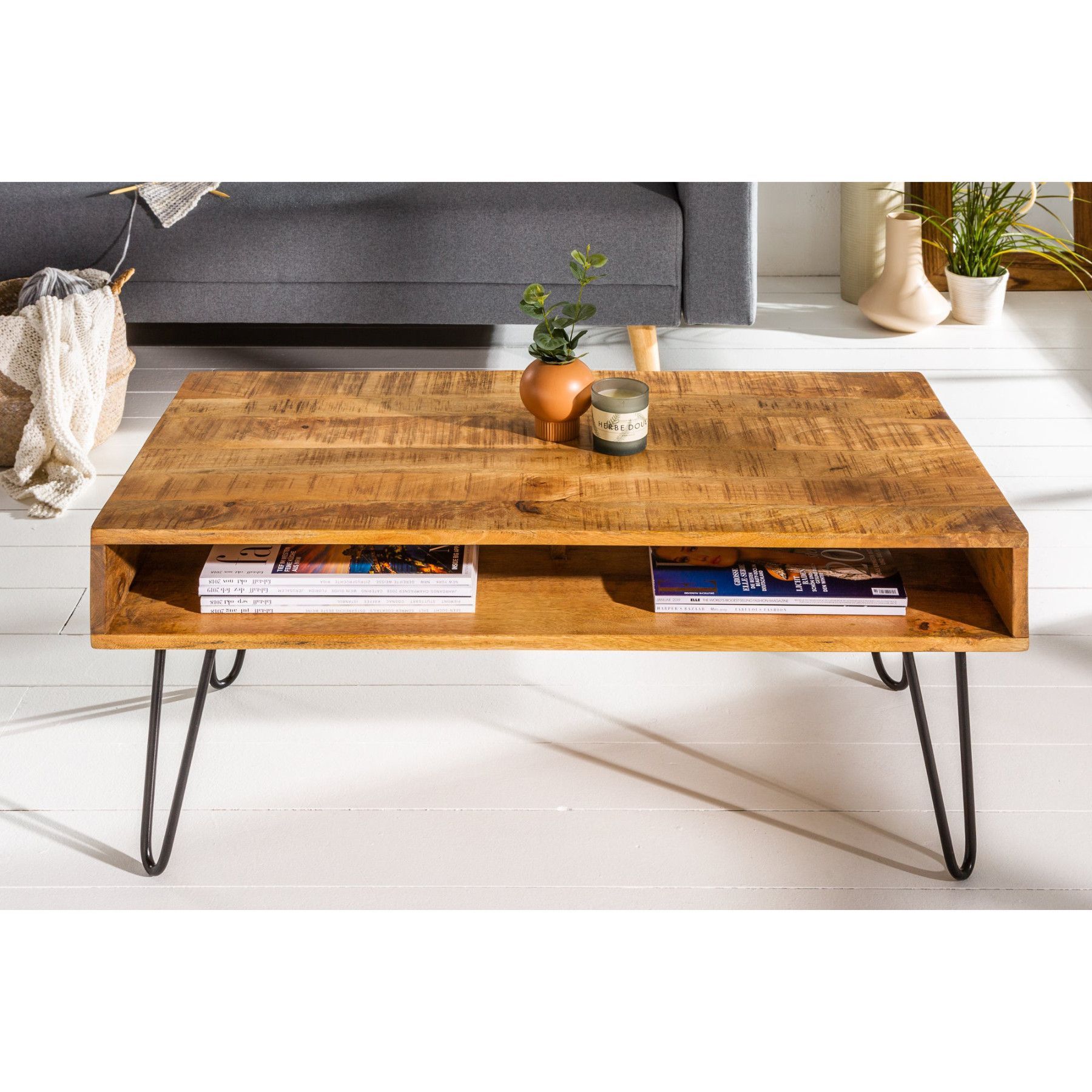 cagü: DESIGN Couchtisch (MALITA] NATUR Mangoholz Ablagefächer handgefertigt 50cm